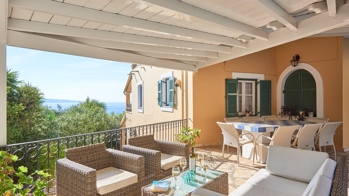 Mit geräumigen Innenräumen, majestätischem Meerblick und Terrassen, die für das Leben im Freien eingerichtet sind, ist diese Familienvilla auf Korfu eine kleine Enklave der ruhigen Entspannung, nur wenige Minuten vom Wasser entfernt.