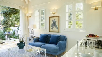 Eingebettet in einen herrlich lebendigen Garten, ist das Seashore House eine wunderbare Villa für bis zu 8 Personen direkt am Strand in Kassiopi. Deren Unterkunft erstreckt sich über drei Gebäude. Deren Haupthaus verfügt über einen hellen und luftigen offenen Grundriss Wohn-, Ess- und Küchenbereich, von dem Terrassentüren auf eine reizvolle Terrasse mit Sitzgelegenheiten im Freien führen. Zwei Doppelschlafzimmer, von denen eines en suite ist, und ein zusätzliches Duschbad vervollständigen das Haupthaus. Deren erste Gästehaus verfügt über einen zweiten OFFENER GRUNDRISS Wohnbereich mit Küche und kleiner Terrasse sowie ein Schlafzimmer mit Doppelbett en suite, während das zweite Gästehaus über ein komfortables Doppelschlafzimmer en suite verfügt, das sich auf die Gärten öffnet.