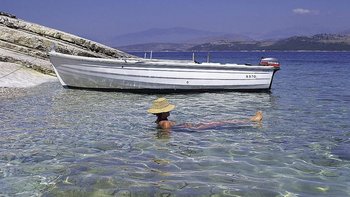 Palmen, Pflanzen und blühende Sträucher füllen die wunderschönen Gärten, die die malerische Villa Kasomitria umgeben. Dessen Gebäude liegt in den Küstenhängen oberhalb der Kerasia-Bucht und ist in sechs Wohnungen unterteilt, die jeweils eine eigene Terrasse oder einen Balkon mit herrlichem Blick auf die Bucht haben. Sophula ist ein Apartment im Erdgeschoss mit einer überdachten Terrasse am Pool und einem Split Interieur, bestehend aus einem Zweibett- und einem Doppelschlafzimmer, jeweils mit Klimaanlage, und ein paar Stufen weiter unten, einem gemütlichen kleinen Wohnzimmer und einer Bar-Küche. Dessen Kasomitria Apartments sind unprätentiös, komfortabel eingerichtet und familienfreundlich, mit Gemeinschaftseinrichtungen wie dem einladenden Swimmingpool und dem angrenzenden und Kinderplanschbecken und Grillplatz. Nur 10 Minuten zu Fuß vom Kerasia Strand und fünfzehn Minuten vom Hafen von St. Stephano entfernt, eignet sich das Haus für Gruppen von Familie oder Freunden, da zwei oder mehr der Apartments zusammen gebucht werden können.