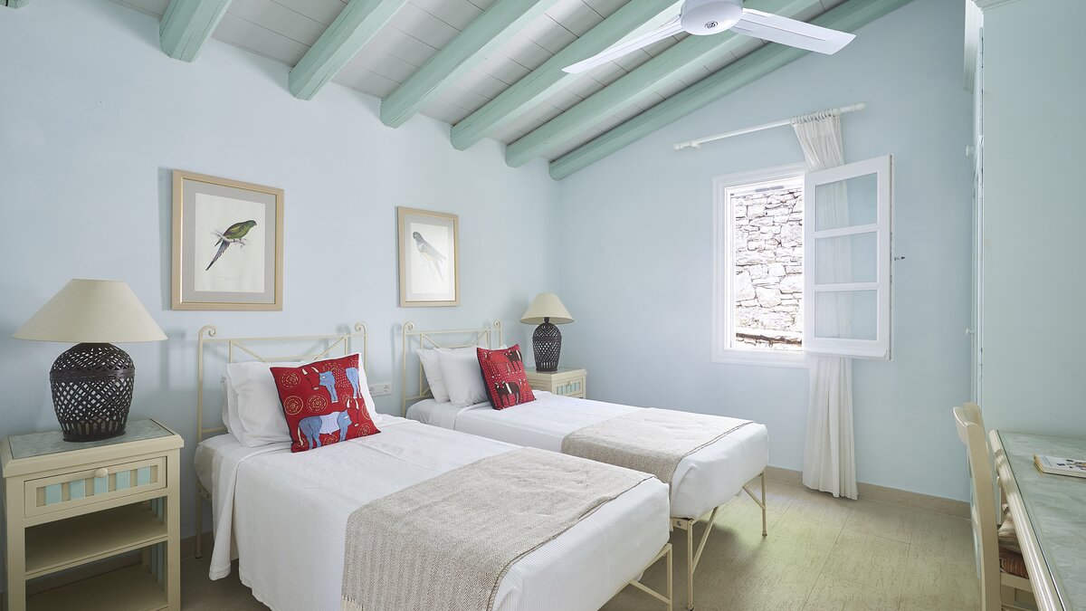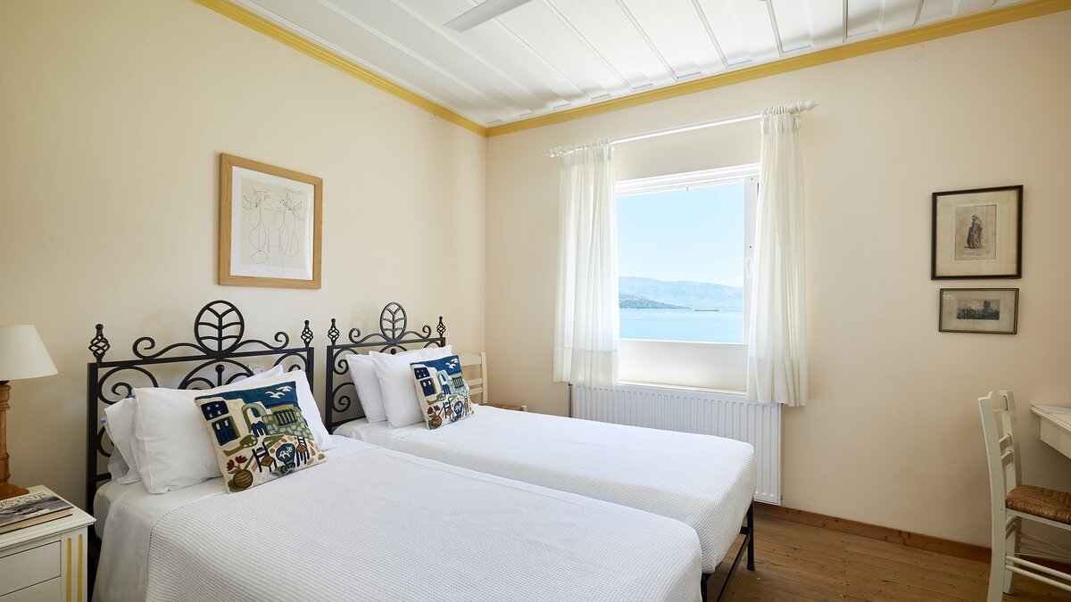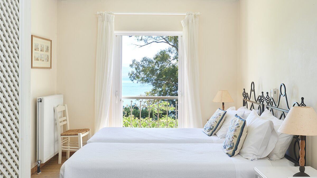 Mit Blick auf das Meer vom Pool und der überdachten Terrasse, blühenden Sträuchern neben einem „Wohnzimmer“ im Freien am Pool, einem kleinen Brunnen auf einer langen Pergola-Terrasse und den Düften des Kräutergartens, die sich mit den Pinien am Hügel vermischen, ist das Leben im To Perivoli ein wahrhaft verführerisches Erlebnis. Und das mit entwaffnender Einfachheit entworfene Interieur der Villa ist nicht weniger einladend. Die Unterkunft ist auf zwei Gebäude aufgeteilt, mit drei Schlafzimmern im Haupthaus und zwei im angrenzenden Cottage, das auch über ein eigenes Wohnzimmer/Küchenzeile verfügt, das attraktiv mit bemalten Dachsparren und gepolsterten Rattanmöbeln eingerichtet ist. Im Haupthaus gibt es viel Platz für ein vollständiges Beisammensein, wo sich eine geflieste Pantryküche zum Pool hin öffnet und ein großes Wohnzimmer mit cremeweißen Sofas und Doppeltüren zur Terrasse ist kühl und gemütlich. Und dieses charmante Ensemble ist auch gut positioniert, um die Küste und die Landschaft der Insel zu genießen. Mit direktem Zugang zum ruhigen Kouloura-Strand und zehn Minuten von einer Taverne entfernt, ist To Perivoli nur 1 km von den Wassersportmöglichkeiten in Kalami entfernt. Agni, San Stephano, Avlaki und Kassiopi sind alle 8 km entfernt.