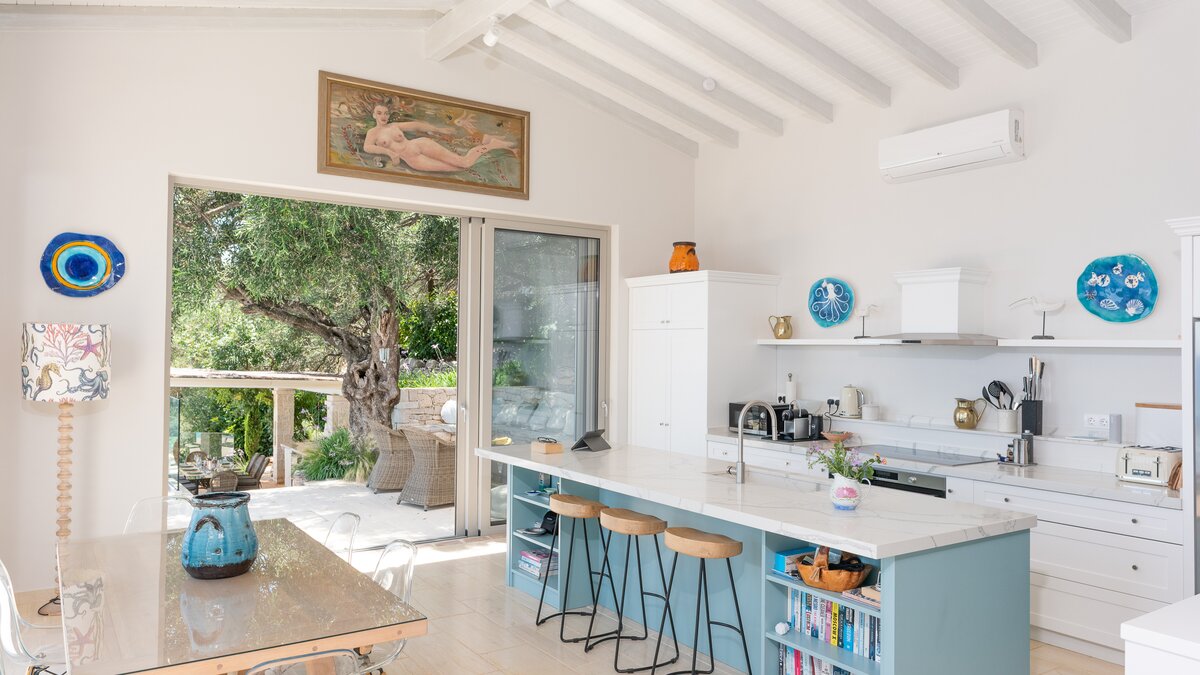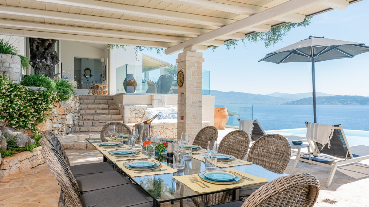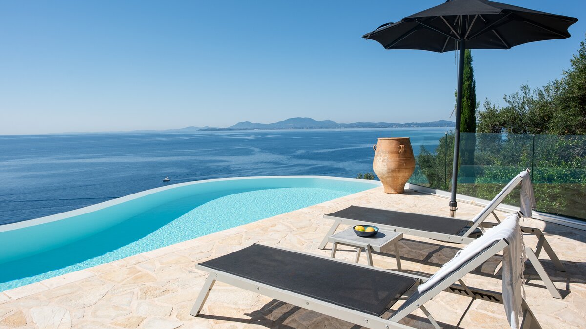 Die Villa Cheili ist ein wunderschön restaurierter Rückzugsort direkt am Meer an der begehrten Nordostküste von Korfu. Sie bietet direkten Zugang zum Ionischen Meer und einen atemberaubenden Blick über das Wasser.