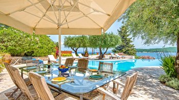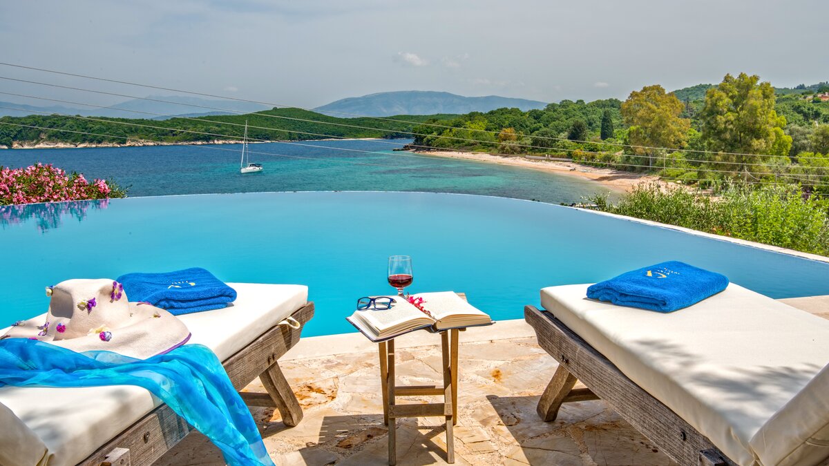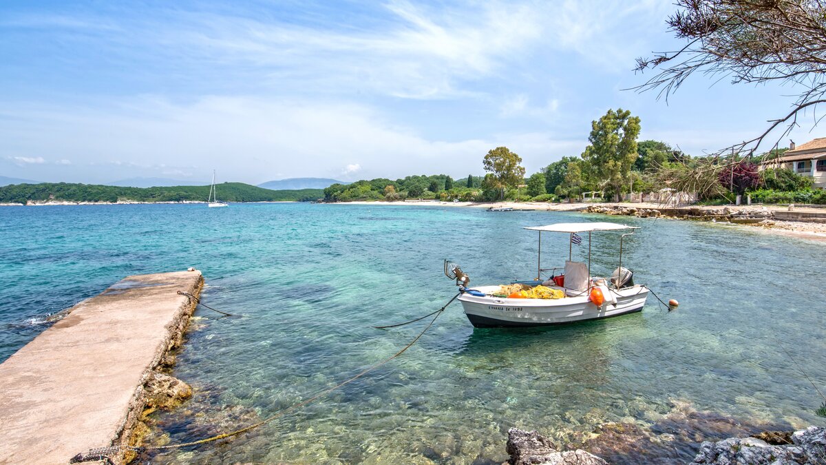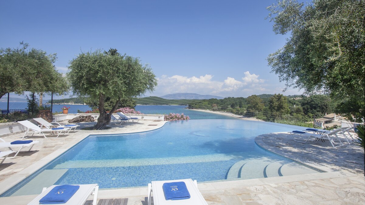 In bester Lage an der Nordostküste der Insel, ist dies eine ruhige und geräumige Luxusvilla auf Korfu; ruhig, privat und mit herrlichem Meerblick von seinem außergewöhnlichen Pool und einen Weg hinunter zum Strand und dem Steg.