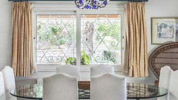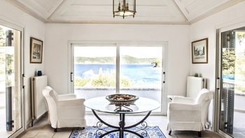 Eine schöne Mischung aus englischem Landkomfort und mediterranem Lebensstil, ist dies eine sehr entspannte Villa, direkt über dem Meer gelegen, mit einem Weg hinunter zum Strand von Coyevinas und einem Bootsanlegeplatz. Dem Haus folgt die Landschaft in seinem gestaffelten Gelände und öffnet sich von jeder der beiden Etagen direkt zum Garten, in einer ausgezeichneten Aufteilung für zwei Familien oder eine Gruppe von Freunden. Es gibt zwei Schlafzimmer und eine Küchenzeile auf der unteren Gartenebene, während die obere Etage auf eine baumschattige Terrasse am Pool trifft und über zwei Schlafzimmer mit eigenem Bad und Bad, zusammen mit einer coolen blauen Pantryküche und einem offenen Wohnzimmer. Komfortabel eingerichtet, mit fröhlichen Teppichen auf dem Fliesenboden, verfügt dieses Zimmer über einen Wohn- und Essbereich, Türen zu einer überdachten Terrasse, die ihr Äquivalent im Freien bildet, und einen Torbogen zu einem ruhigen Gartenzimmer, das attraktiv gestaltet ist und einen herrlichen Blick auf das Meer bietet. Im Freien erstreckt sich ein fabelhafter Freiform-Pool bis zu einem Infinity-Rand, der mit dem Blau des Meeres dahinter zu verschmelzen scheint, und es gibt reichlich gepolsterte Liegen und einen eingebauten Grill. Denen Annehmlichkeiten von Kassiopi sind bequem zu Fuß, mit dem Boot oder auf der Straße zu erreichen.