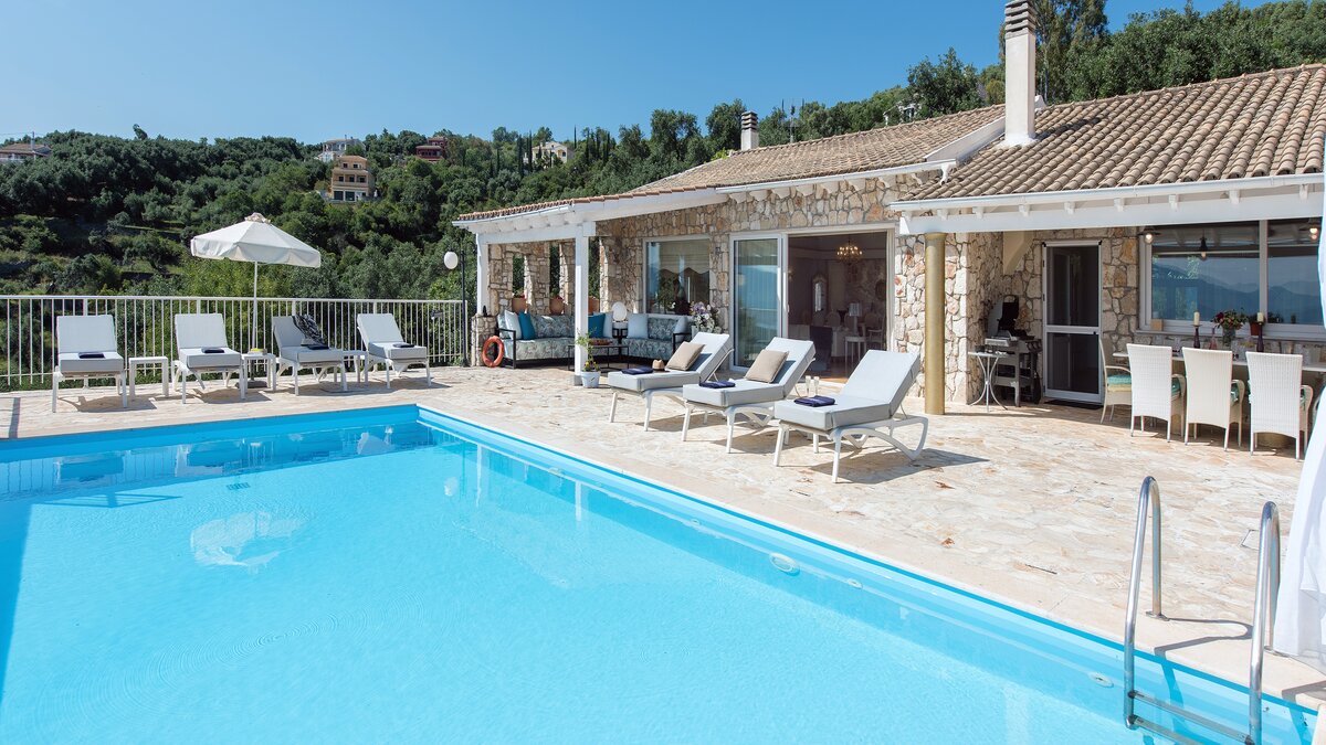 Mit atemberaubender Aussicht von der außergewöhnlichen Poolterrasse und geräumigen Innenräumen, stilvoll gestaltet, befindet sich diese Luxusvilla auf Korfu in ruhiger Lage und doch in der Nähe von Kassiopi.
