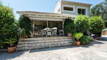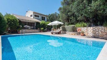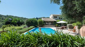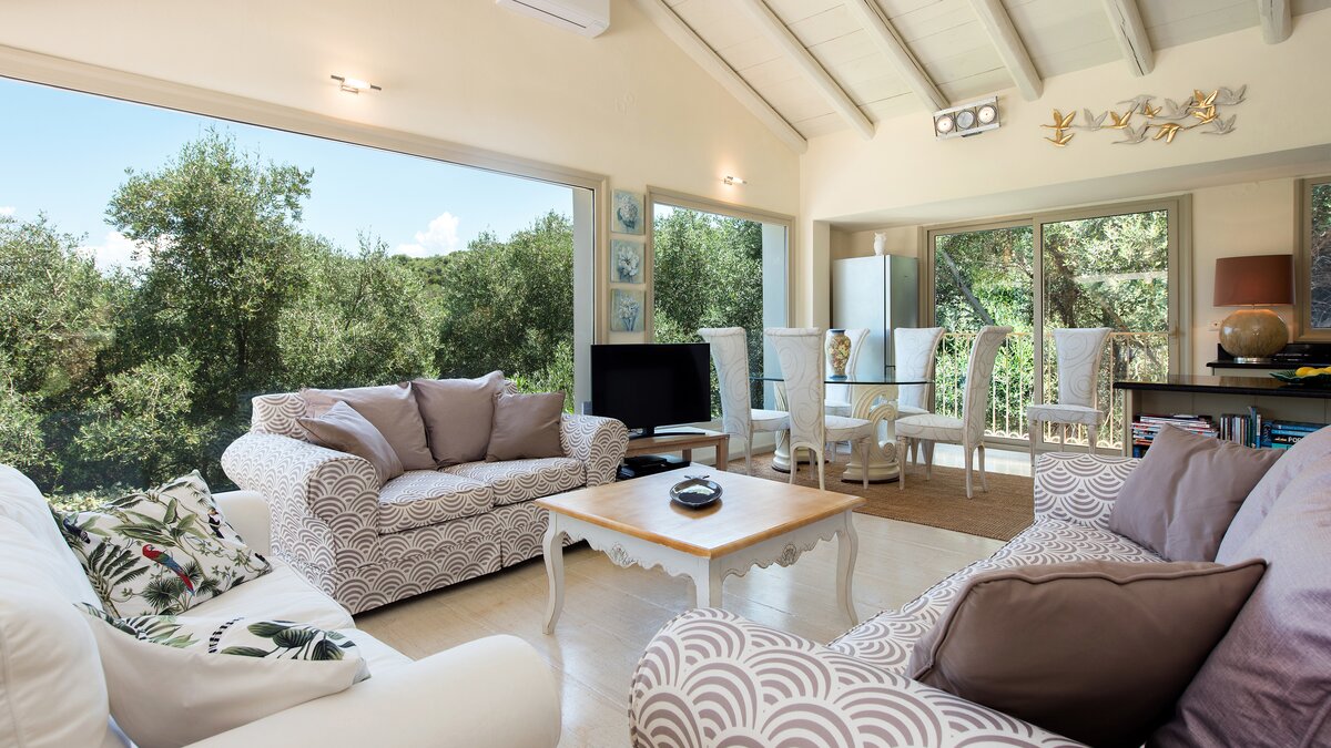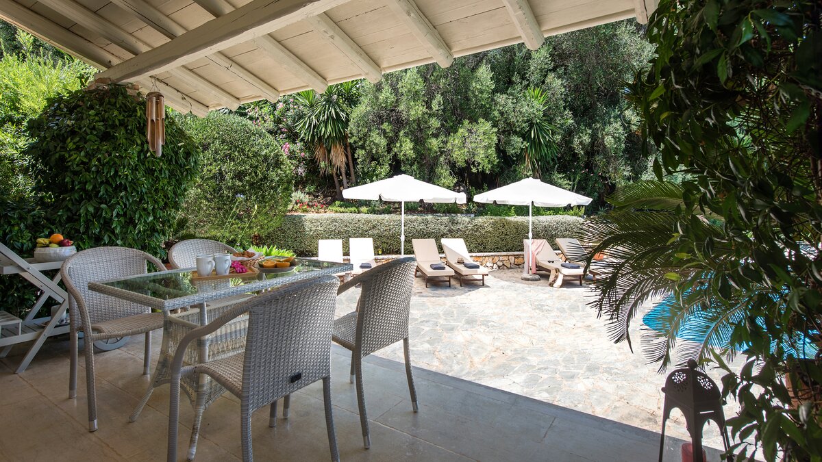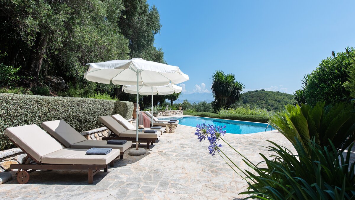 Die Villa Levante ist eine helle und geräumige Unterkunft in der Nähe von St. Stephanos und bietet eine herrliche Aussicht auf die üppigen Hügel von Korfu.