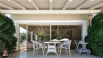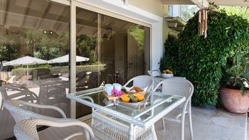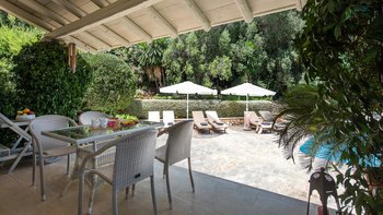 Im Außenbereich lädt eine große Poolterrasse zum Baden oder Sonnenbad ein. Der schattige Speisesaal im Freien ist der perfekte Ort für ein gemütliches Mittagessen. Denen Villa ist ideal gelegen, nur 2 km von Sinies und 3 km von St. Stephanos und Avlaki entfernt.