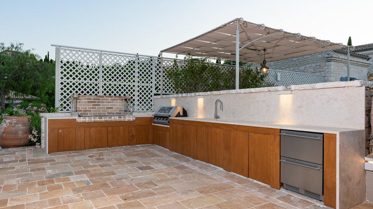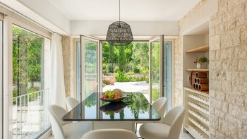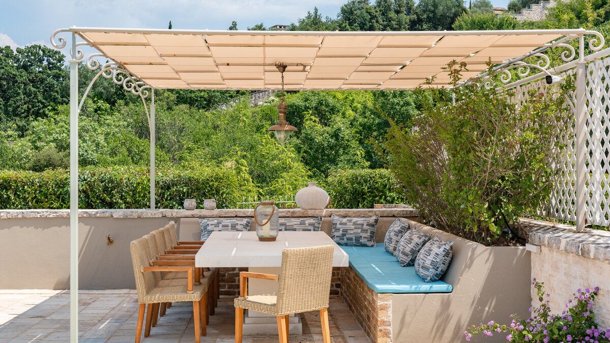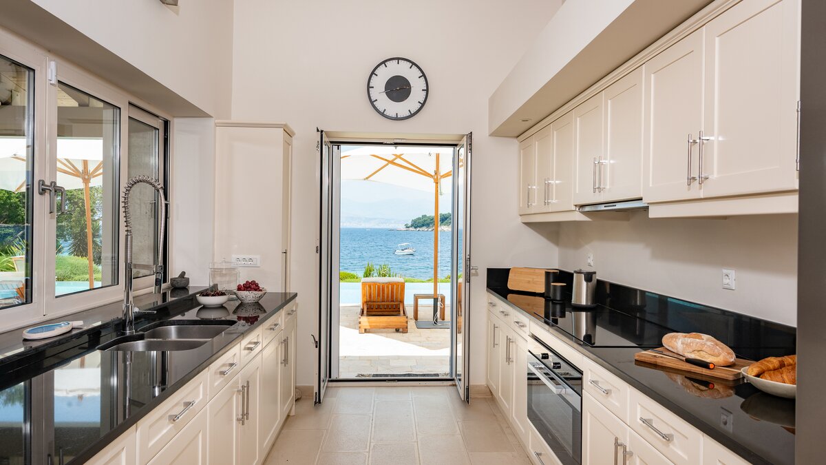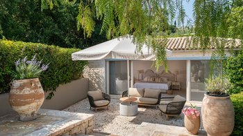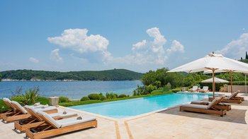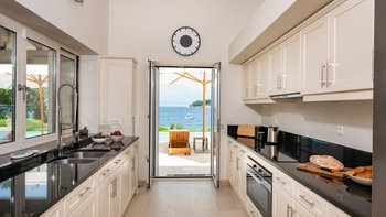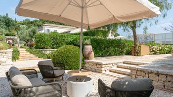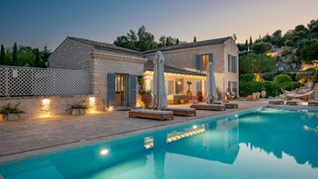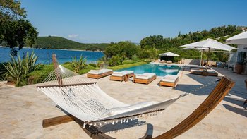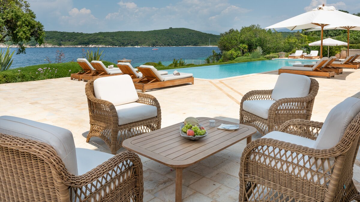 Set in gardens that hem the seafront, with glorious views and a jetty over the water, this luxury villa in Corfu is a contemporary classic, with a twist of tradition adding character and charm.