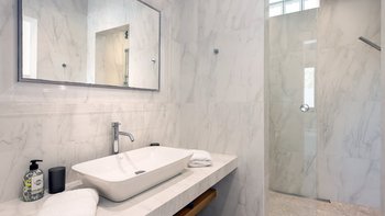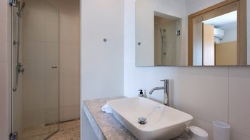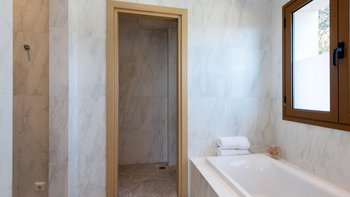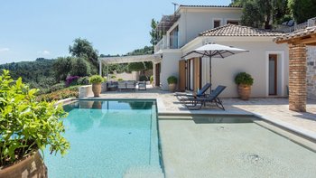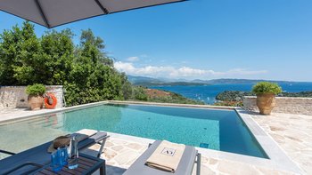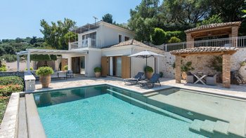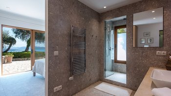 Im Inneren wurde die Villa sorgfältig renoviert und in raffinierten Cremes, Grau- und Blautönen neu eingerichtet. Dessen kühle Farbpalette ergänzt das moderne Styling und den luftigen offenen Wohnbereich, der eine neue, geräumige, moderne Küche, Ess- und Sitzbereiche umfasst. Ebenfalls im Erdgeschoss befinden sich ein Doppelschlafzimmer mit neuem, ebenerdigem Duschbad und ein Zweibettschlafzimmer mit eigenem, ebenerdigem Duschbad (ebenfalls mit einer Tür, die zum Poolbereich führt). Im Obergeschoss öffnet sich das Hauptschlafzimmer zu einer großen Terrasse mit Sitzbereich und Blick auf das Meer und St. Stephano, und das neue Bad umfasst eine ebenerdige Dusche und ein eigenes und separates Bad. Wassersport, Nachtleben und Restaurants sind in den nahe gelegenen Dörfern leicht zu erreichen.