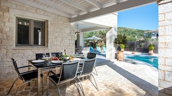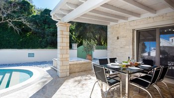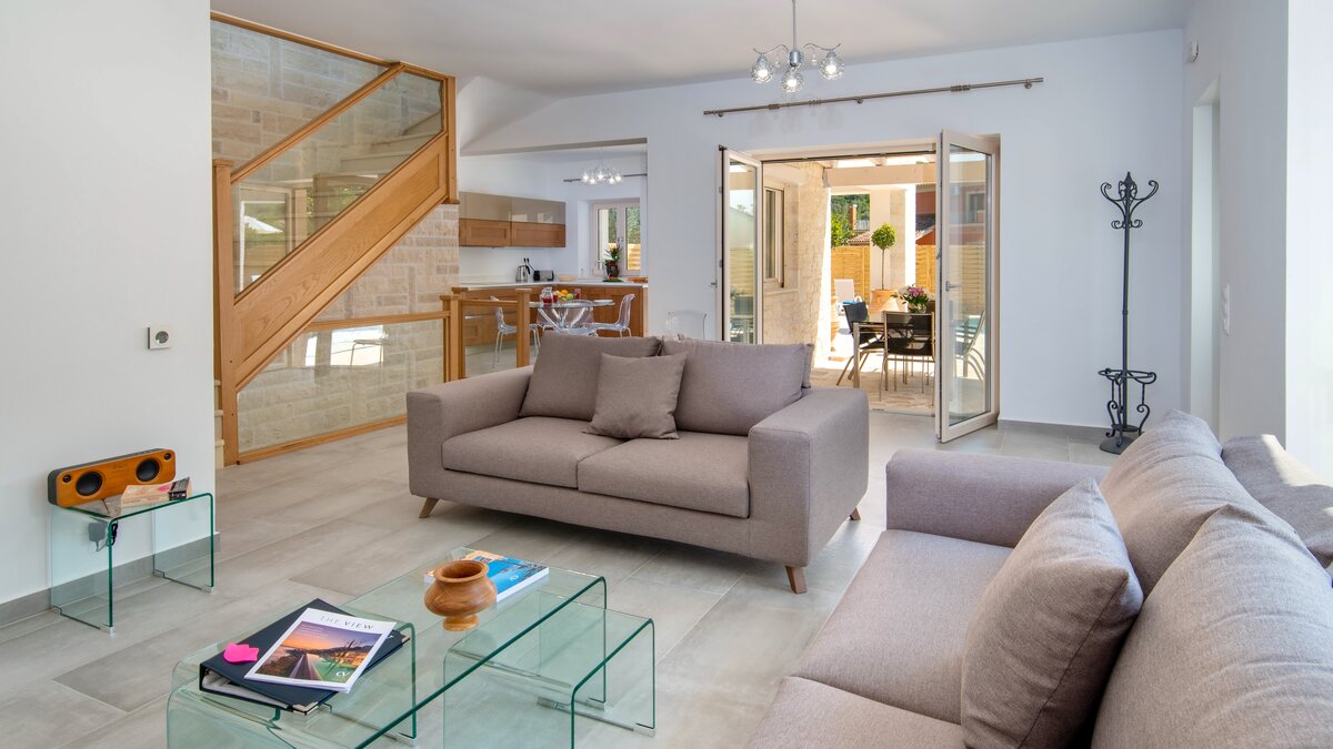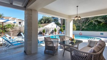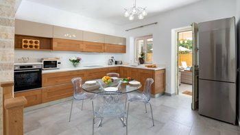 Villa Meraki ist eine atemberaubende, moderne Villa in einer fantastischen Lage direkt im Herzen von St. Stephano, nur wenige Minuten zu Fuß von einer Auswahl an Restaurants, Geschäften und dem Strand entfernt. Dieser perfekt dimensionierte Villa im Zentrum des Dorfes verfügt über einen schönen PRIVATER POOL und eine attraktive überdachte Terrasse mit Essen im Freien, Grill und Pizzaofen für Mahlzeiten im Freien und Sundowners. Dieser Villa ist wunderschön und hochwertig eingerichtet und verfügt über ein offenes Wohnzimmer und eine stilvolle Küche mit direktem Zugang ins Freie, ein Schlafzimmer mit Doppelbett und einen Hauswirtschaftsraum im Erdgeschoss. Alle drei Schlafzimmer verfügen über ein eigenes Bad mit Dusche. Im ersten Stock befindet sich ein wunderschönes Hauptschlafzimmer mit Doppelbett, das zu einem großen privaten Balkon führt, und ein Schlafzimmer mit Doppelbett mit eigener Terrasse. Der Strand von St. Stephano ist nur fünf Minuten zu Fuß von der Villa entfernt, die Strände von Kerasia und Avlaki sind nur eine kurze Autofahrt entfernt und Kassiopi mit all seinen Annehmlichkeiten nur 5,8 km von der Unterkunft entfernt.