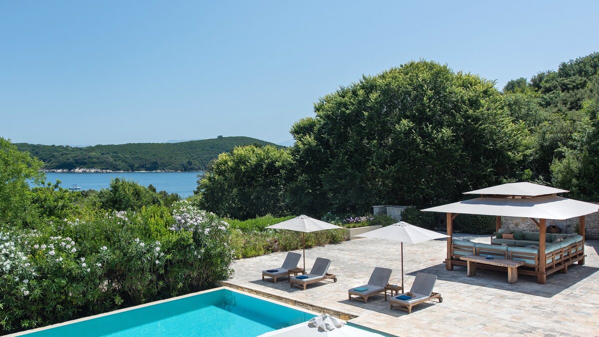 Ideal zwischen Avlaki und Coyevinas Strand gelegen, ist diese atemberaubende Villa ABOVE ideal für Familien, wunderschön gestaltet mit Privater Pool.