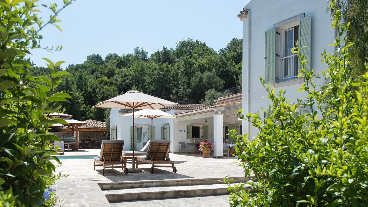 Die Außenterrasse ist groß und ideal gelegen, um die Aussicht zu genießen. Es gibt viele Orte zum Entspannen und Essen, neben dem Pool. Deren Villa ist nur zwei Minuten zu Fuß von einem ruhigen Strand, fünf und zehn Minuten Autofahrt von Kassiopi und San Stephano entfernt, wo Sie eine Reihe von Geschäften, Restaurants und Bars finden.