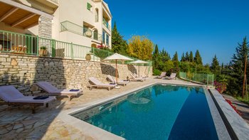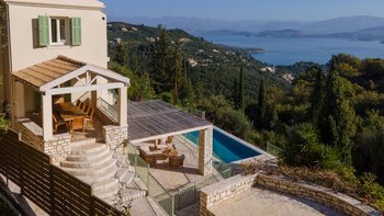 Villa Petalouda ist ein wunderschönes, geräumiges Anwesen auf Korfu mit phänomenalem Blick auf das Meer und hinüber nach Albanien. Dieser Villa verfügt zusätzlich zu ihrem schönen Hauptpool über einen unglaublichen 25-Meter-Sportpool.