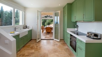 Die Villa Petalouda befindet sich im sonnigen Korfu und ist ein wunderschön renoviertes und geräumiges Anwesen, das sich ideal für einen Familienurlaub eignet. Dieser Villa ist hell und luftig und erstreckt sich über drei Etagen. Im Erdgeschoss befinden sich zwei schöne Doppelzimmer, jedes mit eigenem Bad und Zugang zur Terrasse. Es gibt auch einen gemütlichen Fernsehraum auf dieser Etage mit Apple TV, Netflix und Xbox One. Im Obergeschoss finden Sie ein traditionell korfiotisches, aber minimalistisches, OFFENER GRUNDRISS Wohnzimmer, Küche und Esszimmer, gut ausgestattet zum Entspannen nach einem Tag am Strand. Dieses Zimmer öffnet sich auf eine große überdachte Terrasse mit einem Esstisch im Freien für 14 Personen. Im zweiten Stock befinden sich zwei weitere Doppelschlafzimmer und ein Zweibettschlafzimmer, alle mit eigenem Bad mit Dusche. Beiden Doppelschlafzimmer öffnen sich zu einem Balkon, von dem die Gäste die herrliche Aussicht genießen können.