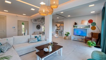 Der Außenbereich ist ebenso beeindruckend, mit einem riesigen Poolbereich und einer umlaufenden Terrasse mit weitem Blick auf das Meer. Es gibt reichlich Platz zum Essen und Entspannen im Freien sowie eine Außenküche mit eingebautem Grill – perfekt für Unterhaltung im Freien. Dessen Lage dieser Villa ist jedoch kaum zu übertreffen. St. Stephano ist weniger als 2 km entfernt mit seinen ausgezeichneten Bars, Restaurants und Bootsverleih – ideal, um die Küste zu genießen. Geschäfte und weitere Restaurants in der Nähe finden Sie in Kassiopi, während der bemerkenswerte Strand Kerasia nur eine kurze Autofahrt entfernt ist.