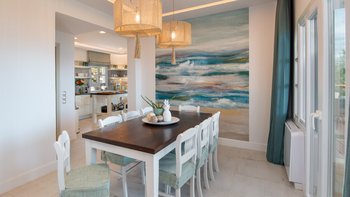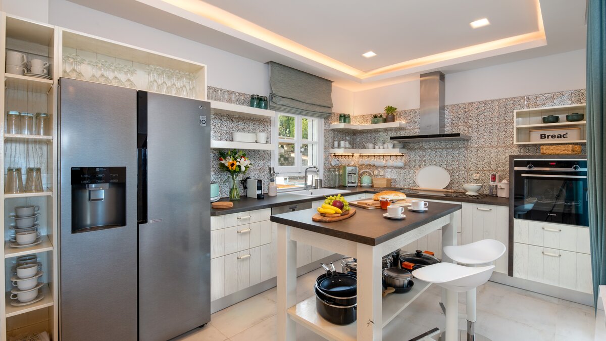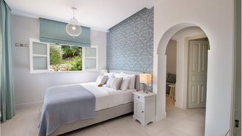 Die Villa Rodi ist ein atemberaubendes Anwesen, das mit viel Liebe zum Detail entworfen wurde – von den himmelblauen Fensterläden, die die Fenster einrahmen, bis zu den auffälligen Wänden in jedem der Schlafzimmer; sein cooles und modernes Farbschema fließt nahtlos durch die Villa. Dessen Erdgeschoss ist OFFENER GRUNDRISS, so dass es schön und geräumig ist. Es gibt einen großen Wohnbereich mit einem bequemen Ecksofa, einer voll ausgestatteten monochromen Küche mit Frühstückstheke und einem separaten Essbereich. Im Haupthaus gibt es vier fabelhafte Schlafzimmer mit Bad auf zwei Etagen, die alle ihren eigenen Balkon und einen atemberaubenden Blick hinunter auf St. Stephano und über das Meer haben. Das Nebengebäude (das von außen zugänglich ist, so dass es vollkommen privat ist) beherbergt zwei weitere Zweibett-Schlafzimmer, beide sind en suite und eines hat seine eigene praktische kleine Miniküche; es gibt auch ein Spielzimmer mit einem großen Fernseher und vielen bequemen Sitzgelegenheiten.