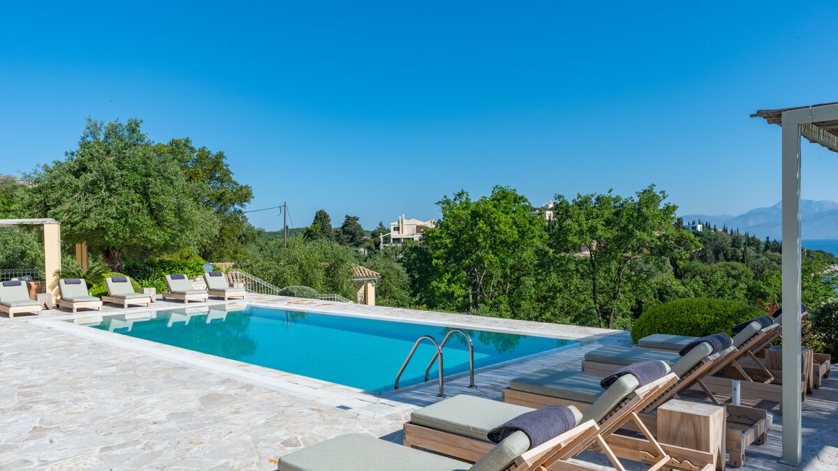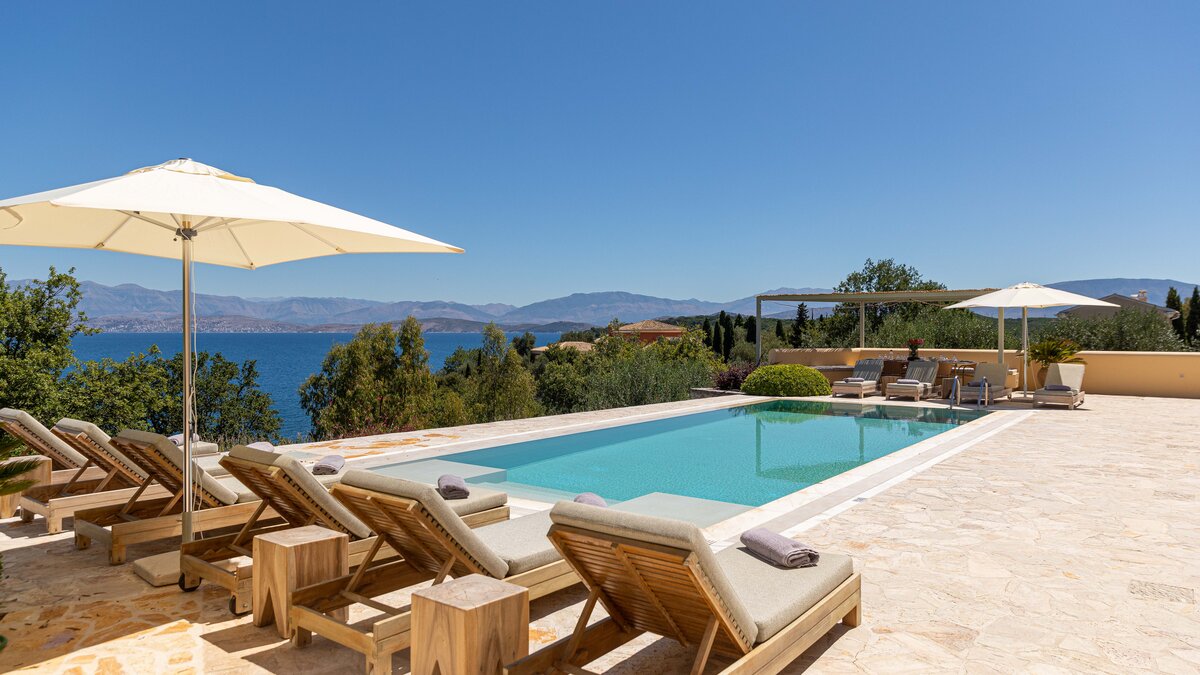 Privat gelegen, stilvoll anspruchsvoll und gleichermaßen attraktiv für Familien oder Gruppen von Freunden, bietet diese Luxusvilla auf Korfu diese glückselige mediterrane Mischung aus Küsten- und Landleben.