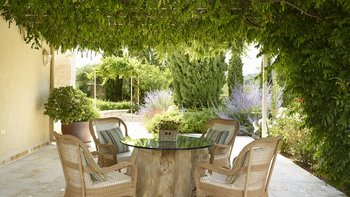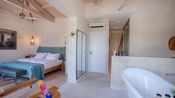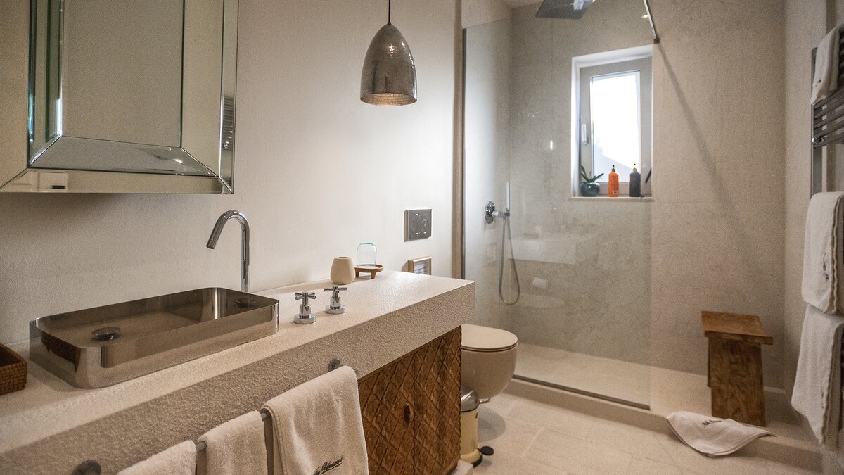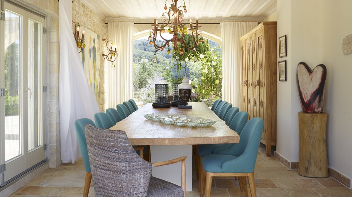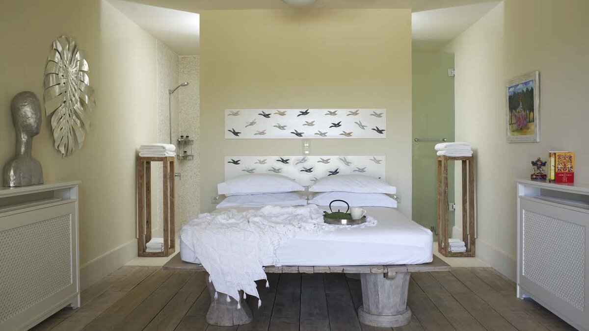 Die Innenräume sind sowohl anspruchsvoll und auch ruhig, mit einem weitläufigen offenen Wohnbereich und sorgfältig ausgewählten modernen Möbeln. Deren Villa verfügt auch über fünf wunderschön eingerichtete Schlafzimmer mit eigenem Bad im Haupthaus sowie eine einzigartige Suite im Glamping-Stil in den angelegten Gärten, während ein privates Fitnessstudio die Möglichkeit bietet, die Wellness-Routinen stilvoll zu pflegen.