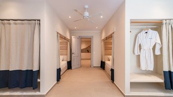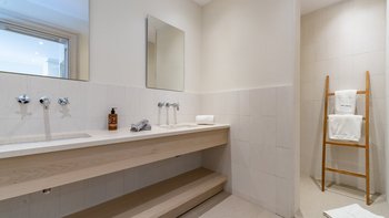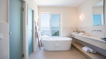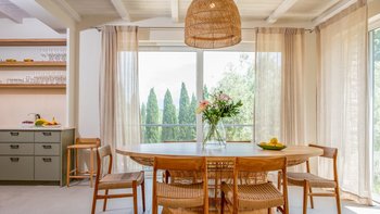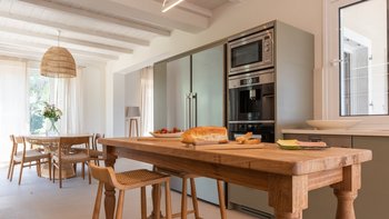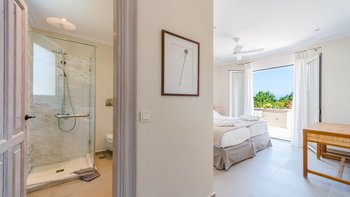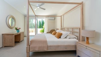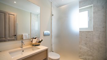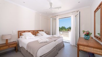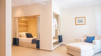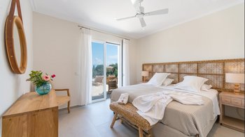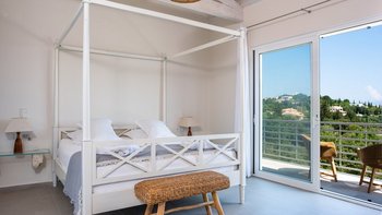 Kunstvoll einfach, elegant raffiniert und äußerst entspannend, ist dies eine schöne Villa im Herzen der wenig überfüllten nordöstlichen Ecke Korfus. „Zografia“ bedeutet ein Gemälde, und die Aussicht von den sonnigen Terrassen und den stilvollen Zimmern ist wirklich bildschön, das Saphirblau der Soukia-Bucht flankiert von schützenden Landzungen. Ein großer Infinity-Pool befindet sich in bester Lage auf der Terrasse, mit einer Pergola am Pool und einer überdachten Veranda, die ein Wohnzimmer im Freien bildet. Von hier aus führt eine Fensterwand ins Haus, wo ein luftiges Wohnzimmer in sanften Blautönen eingerichtet ist, ein romantischer Kronleuchter von der Dachsparrendecke hängt und der angrenzende Essbereich zu einer schicken Pantryküche führt. Es gibt zwei Schlafzimmer auf dieser Etage, ein Haupt-Doppelzimmer auf der obersten Etage mit modernem Himmelbett und eigenem Balkon und eine Gästesuite auf der UNTERE ETAGE mit eigenem Wohnzimmer. Von der ruhigen Lage von Zografia aus führt ein unwegsamer Weg zu einem Strand mit Bootsanlegeplatz und Tavernen in Avlaki, die nur 10 Minuten zu Fuß entfernt sind. Gäste der Villa Zografia profitieren von Concierge-Service und Frühstücksservice.