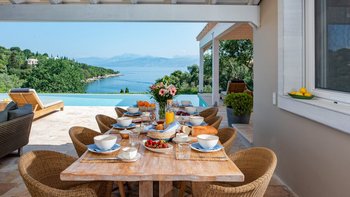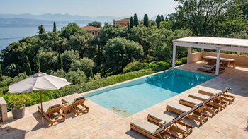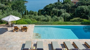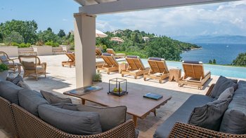 Diese Luxusvilla auf Korfu befindet sich in hervorragender Lage direkt über dem Wasser der wunderschönen Bucht von Soukia und ist schick, stilvoll und sehr geräumig, mit großem Wohnraum im Freien, der durch eine herrliche Aussicht ergänzt wird.