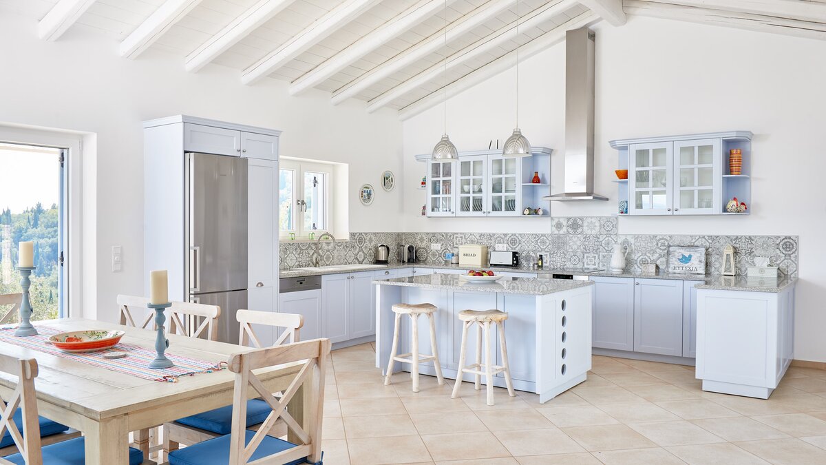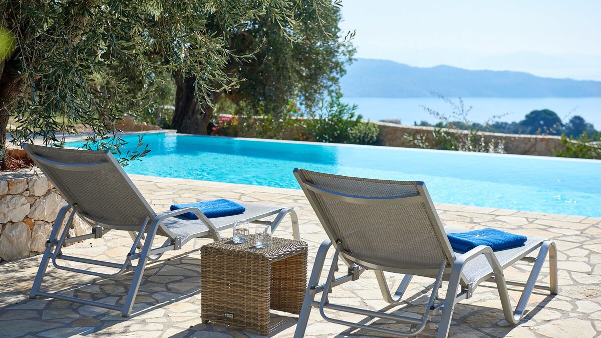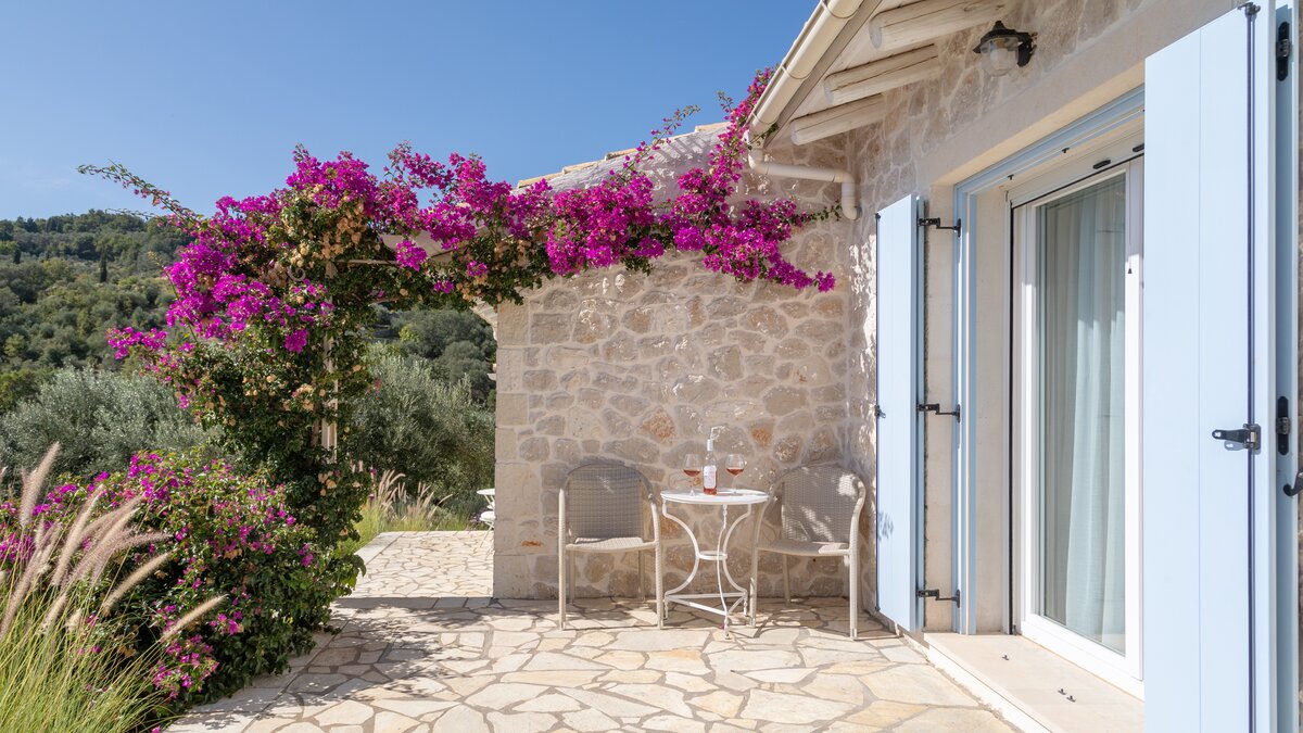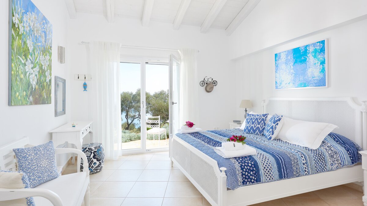 Das Hauptschlafzimmer mit Doppelbett verfügt über ein Bad en suite mit separater Innen- und Außendusche und einen eigenen Balkon. Ein weiteres Doppel- und zwei Zweibettschlafzimmer mit eigenem Duschbad vervollständigen die Residenz. Deren nächsten Kies- und Sandstrände sowie Sinies und die Festung Kassiopi sind nur eine kurze Autofahrt entfernt.