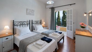 Kasomitria ist eine schöne Villa im Herzen der unberührten Bucht von Kerasia auf Korfu. Sie liegt in wunderschön gepflegten Gärten, die mit bunten Sträuchern und Kletterpflanzen glühen und von hohen Zypressen gesäumt sind. Deren Villa befindet sich in Privatbesitz und ist exklusiv von CV Villas. Sie besteht aus sechs eigenständigen Apartments und ist auf mehreren Ebenen gebaut, von denen jedes einen herrlichen Meerblick von seinem eigenen Balkon oder seiner Terrasse aus bietet. Eine der drei Wohnungen im ersten Stock, Yannakis überdachter Balkon mit Blick auf die Poolterrasse, während das kompakte, aber komfortable Interieur im einfachen Inselstil eingerichtet ist und über eine kleine Küche / Esszimmer, ein Wohnzimmer und ein klimatisiertes Zweibett-Schlafzimmer verfügt. Deren Gemeinschaftseinrichtungen auf dem Grundstück umfassen einen Grillplatz und einen Pool. Und dieses gesellige kleine Anwesen könnte eine gute Wahl für Gruppen von Freunden sein, wenn zwei oder mehr Wohnungen zusammen gebucht werden. Kerasia Beach und der Hafen von St. Stephano sind beide zu Fuß erreichbar, und Kassiopi ist nur 6 km entfernt, um das Tempo nach Einbruch der Dunkelheit zu erhöhen.