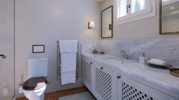 • Zweibett-Schlafzimmer (kann als Kingsize-Bett gemacht werden) mit Dusche en suite und begehbarem Kleiderschrank