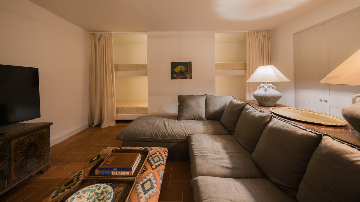 Mit der einladenden Atmosphäre eines geliebten Hauses strahlt diese wunderschöne Familienvilla einen Hauch von schlichter Eleganz aus. Von den bequemen Sofas und gut bestückten Bücherregalen bis hin zu der schattigen Loggia für Mahlzeiten im Freien und den Dampfstühlen auf der offenen Terrasse ist das Yialiskari House ein anmutiger Ort, der zu einem entspannten Tempo ermutigt. Dessen Küche/Esszimmer der Villa ist durchgehend klimatisiert und bietet einen Kochservice für absoluten Komfort. Sie blicken auf das steinerne Wohnzimmer, von dem aus Doppeltüren auf eine überdachte Veranda führen. Jedes der vier Schlafzimmer verfügt über ein eigenes Bad oder eine Dusche und Zugang zu einem Balkon oder einer Terrasse. Ein paar Schritte unterhalb des Hauses und aus Sicherheitsgründen eingerichtet und eingerichtet, bildet ein zehn Meter langer Infinity-Pool den Mittelpunkt des Grundstücks. Von der ruhigen Hanglage aus lenkt ein herrlicher Blick über blühende Gärten, versilberte Olivenhaine und die verschlafene, geschützte Bucht. Der Kieselstrand von Yialiskari ist 10 Minuten zu Fuß entfernt, Agni und Kalami sind jeweils etwa 15 Minuten zu Fuß entfernt.
