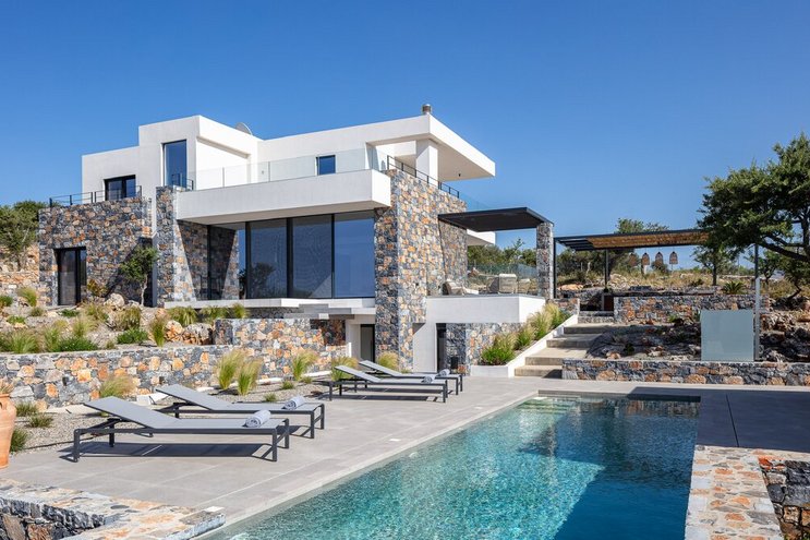 Mit einer unglaublichen Aussicht auf das Meer und die Insel Spinalonga ist die Villa Gaea eine geräumige und moderne Villa für einen Familienurlaub auf Kreta.