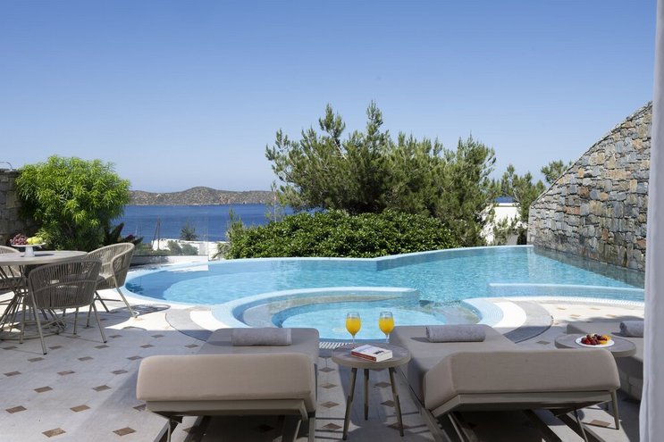 Die Kombination aus Privater Pool und Verwöhn-Suite mit den feinen Einrichtungen, dem Service und dem Komfort des renommierten Elounda Golf Resorts bietet Luxus und Romantik, nur zu zweit.
