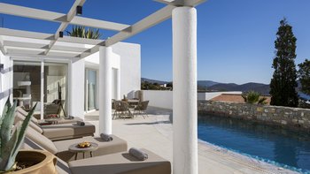 Die individuell gestalteten und voll klimatisierten Villen sind mit raffinierter Eleganz eingerichtet und verfügen jeweils über luxuriöse Marmorbäder mit Jacuzzi-Badewannen, einen Privater Pool mit Jacuzzi und eine offene, möblierte Terrasse mit idyllischer Aussicht. Der Elounda Villa verfügt über zwei Schlafzimmer mit Bad und eine offene Küche/Wohn-/Esszimmer mit Türen zur Poolterrasse. Kochservice und Massagen in der Villa sind nur einige der optionalen Extras.