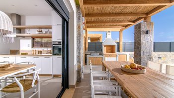 In der Nähe eines Sandstrandes und nahe gelegener Geschäfte und Restaurants erwartet Sie die Villa Thalia, ein modernes Haus für sechs Personen in Ostkreta.