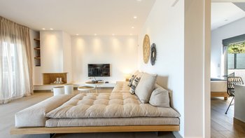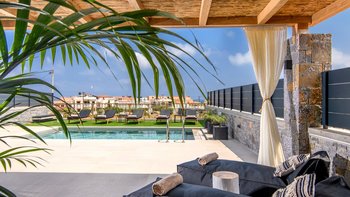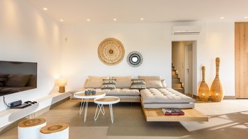 Die Villa Thalia ist eine moderne Unterkunft für 6 Personen in einer wünschenswerten Lage, nur wenige Gehminuten von einem schönen Sandstrand sowie nahe gelegenen Geschäften und Restaurants entfernt. Deren Unterkunft erstreckt sich über zwei Etagen und die gesamte Villa ist in neutralen Farbtönen und kühlen Grautönen gehalten. Im Erdgeschoss befindet sich eine offene Küche, ein Esszimmer und ein Wohnzimmer, das sich zur Terrasse hin öffnet. Ein Zweibettschlafzimmer und ein separates Bad vervollständigen das Erdgeschoss. Draußen ist perfekt für das Leben im Freien eingerichtet, mit einem frischen Esstisch im Freien, Liegen im Schatten und bequemen Holzliegen am schönen privaten Salzwasserpool; es gibt auch eine Außenküche und einen Grill für lange Mittagessen in der Villa.