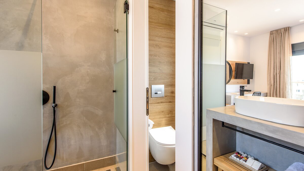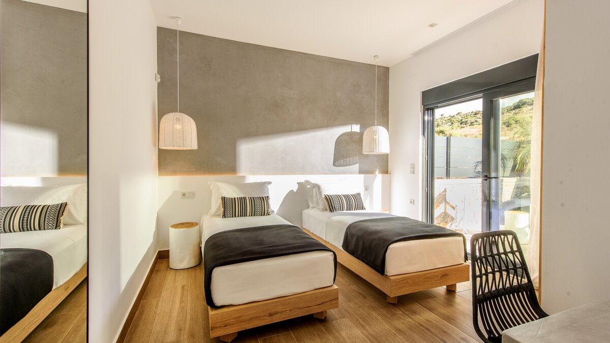 Im Obergeschoss befinden sich zwei weitere moderne Schlafzimmer, beide mit eigenem Bad und Zugang zu einem schönen gemeinsamen Balkon mit Blick auf den Pool. Große Gruppen können neben der Schwestervilla Thea nebenan gemietet werden.
