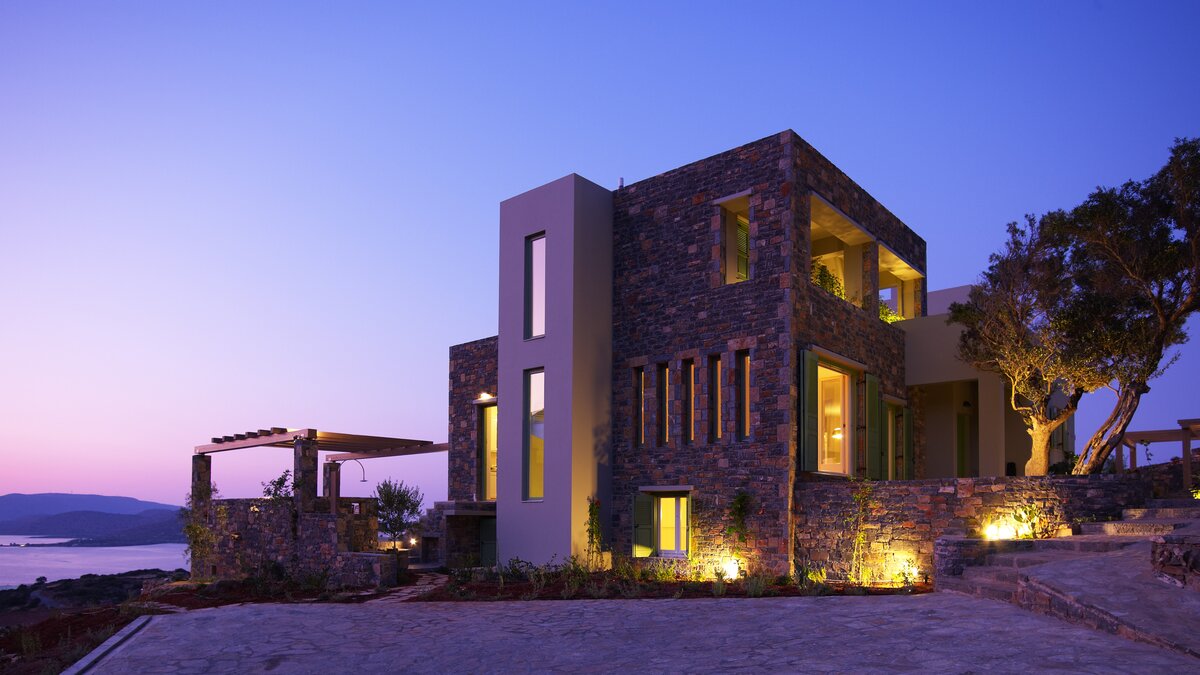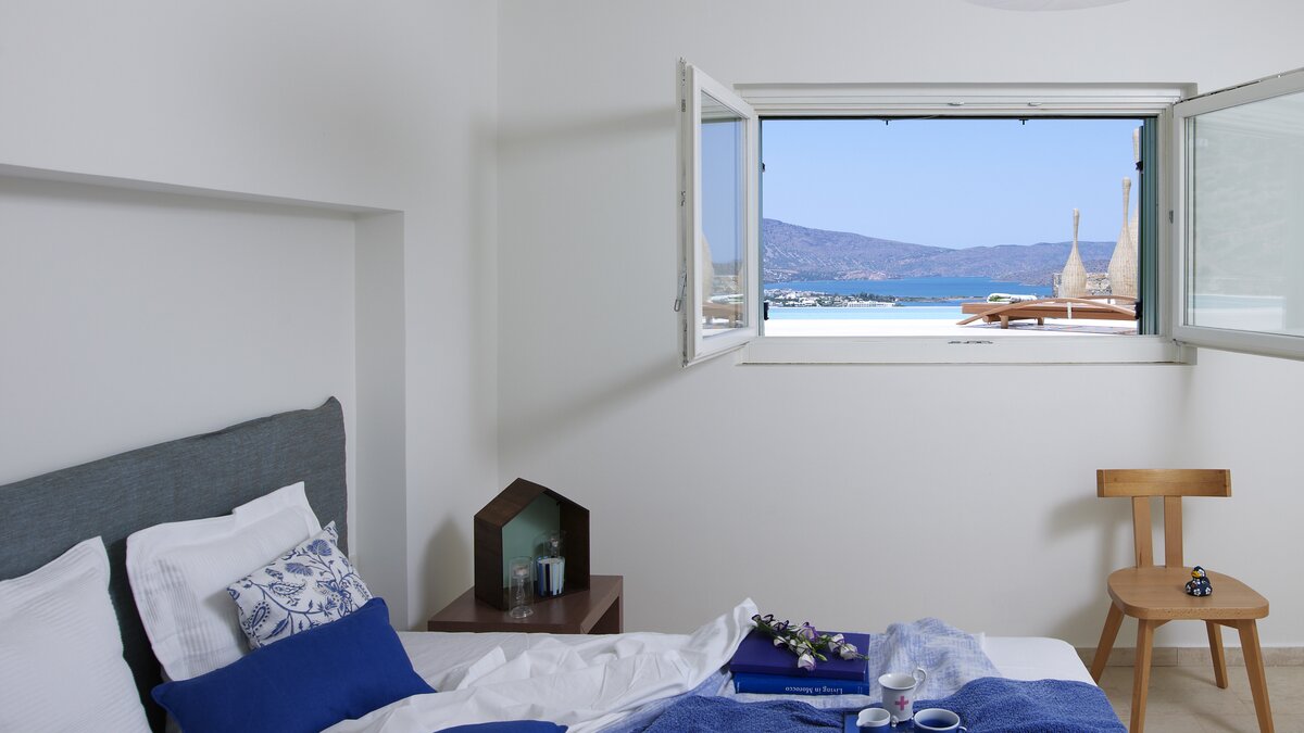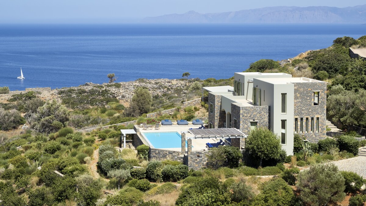 Am Stadtrand von Elounda auf Kreta gelegen, bietet dieses elegante Anwesen einen perfekten griechischen Kurzurlaub für die ganze Familie. Im Erdgeschoss dieser modernen Villa finden die Gäste einen geräumigen Wohn-/Essbereich mit neutraler Einrichtung, einem Kamin und hohen Decken vor. Es gibt sogar einen Arbeitsbereich mit Schreibtisch. Deren Küche ist komplett ausgestattet, mit französischen Türen, die auf eine schattige Lounge-Terrasse mit Zugang zum Poolbereich führen. Deren Erdgeschoss verfügt auch über zwei Schlafzimmer, von denen eines über einen externen Eingang zugänglich ist, und ein Badezimmer en suite und Zugang zur Terrasse. Im ersten Stock befindet sich ein wunderschönes Hauptschlafzimmer mit Himmelbett und eigenem Bad mit Regendusche. Im ersten Stock befindet sich auch ein Doppelschlafzimmer mit Bad en Suite, das über eine Außentreppe erreichbar ist. Von diesem Raum aus haben Sie einen herrlichen Meerblick und Zugang zu zwei hübschen Terrassen.