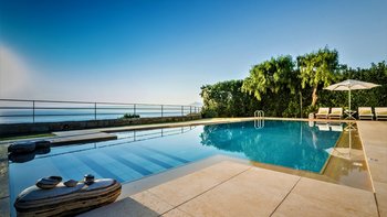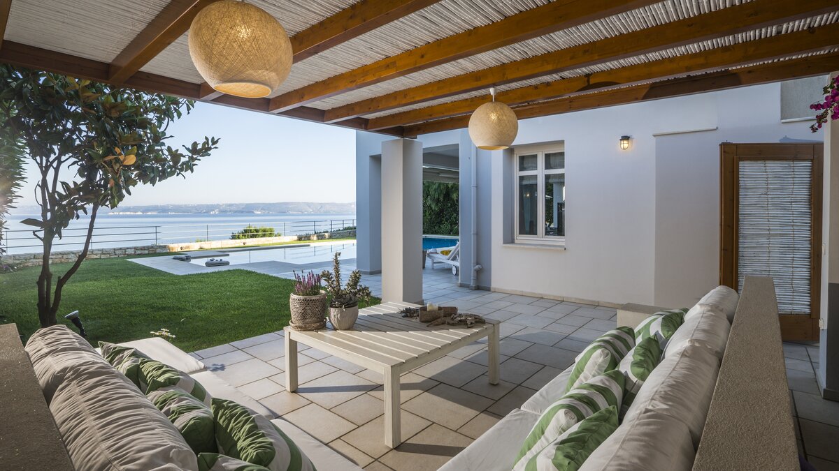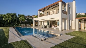 Diese schicke und moderne Luxusvilla liegt oberhalb des Wassers am Rande eines hübschen Fischerdorfes und bietet hohe Standards, feine Einrichtungen und einen herrlichen Blick auf die Küste und das kretische Meer.