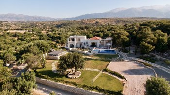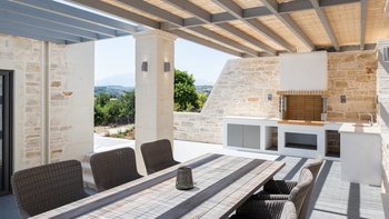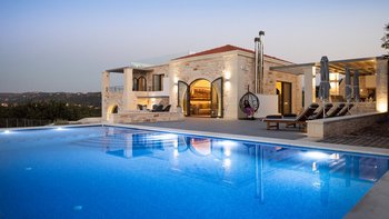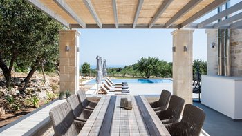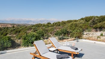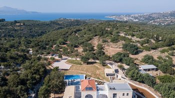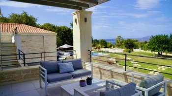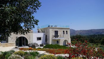 Eine elegante und moderne Steinvilla mit Meerblick, auf einem Hügel in der Nähe der Strände und hübschen Dörfern im Nordwesten Kretas.