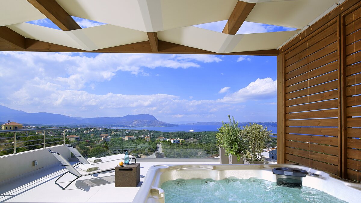 Im Außenbereich befinden sich eine Hängematte auf der Sonnenterrasse und ein Essbereich im Freien mit Blick auf den Infinity-Pool. Der Aoriete liegt 300 m vom Dorfplatz Kokkino Chorio, 1,5 km vom unberührten Strand Koutalas und 4 km vom lebhaften Almyrida-Strand mit Wassersportmöglichkeiten, Cafés und Fischtavernen entfernt.