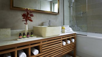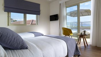 • Zweibett-Schlafzimmer (kann als Kingsize-Bett gemacht werden) mit Hydromassage-Badewanne en suite mit Zugang zum Balkon
