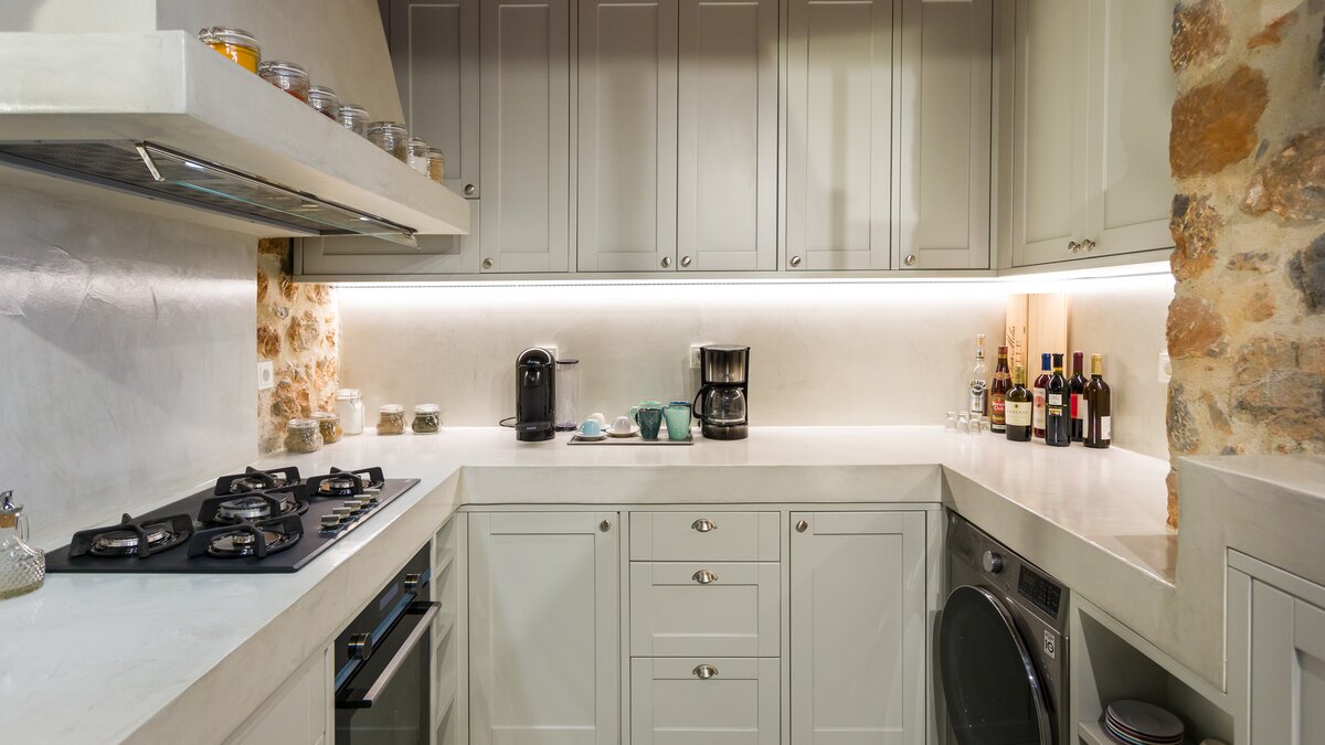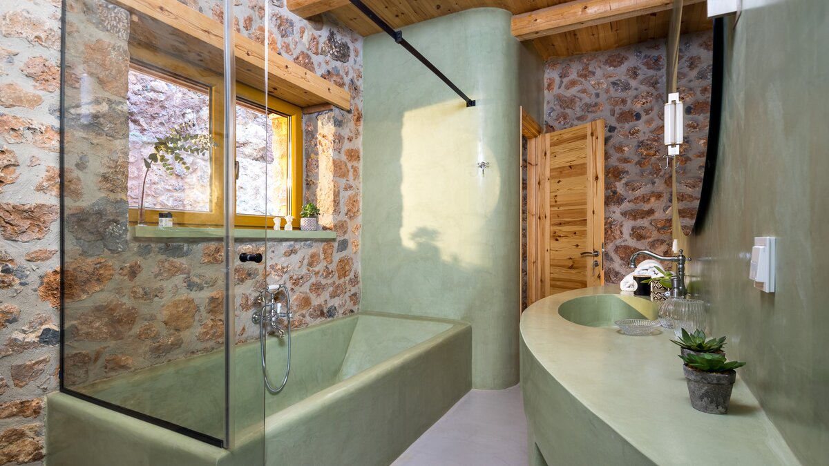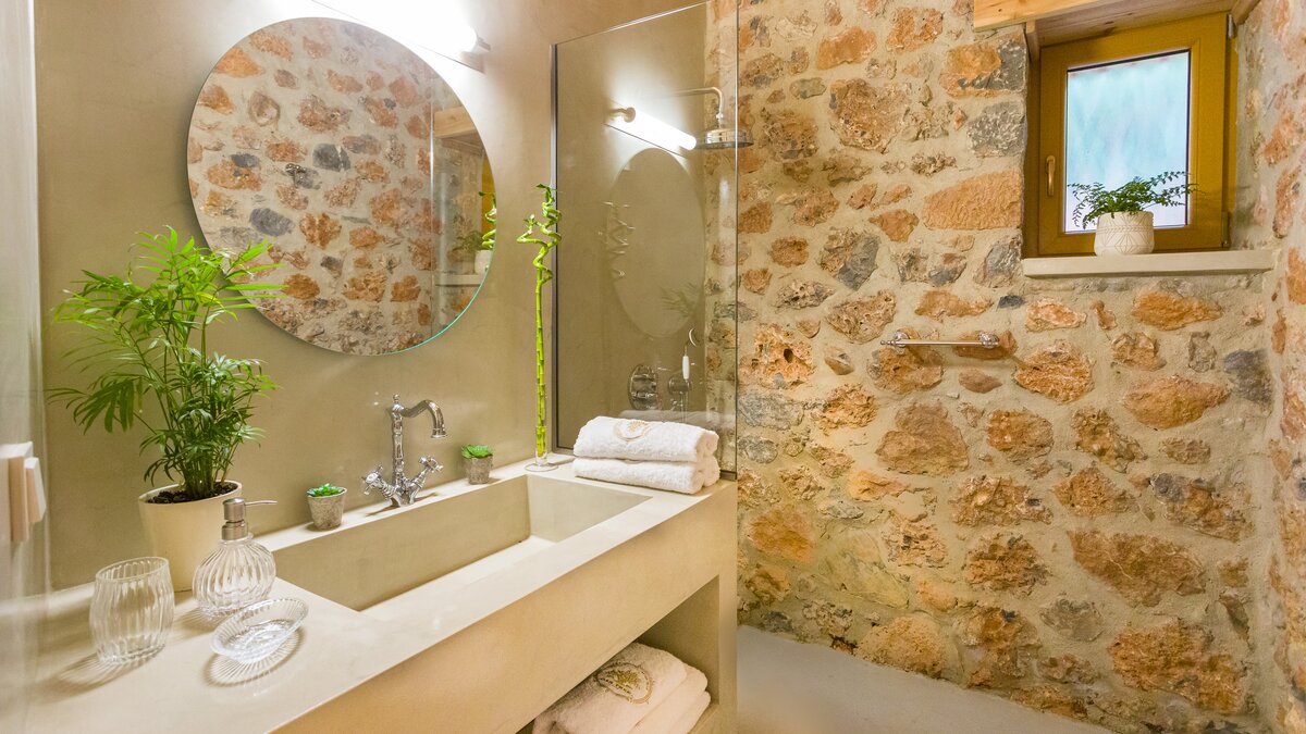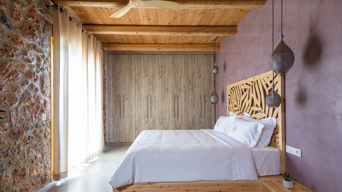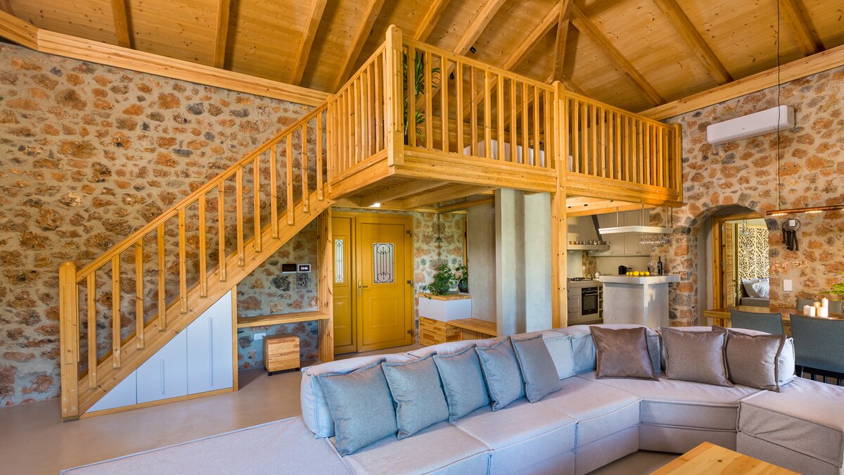 Die Villa Demeter ist ein atemberaubendes Anwesen am Hang der kretischen Berge. Deren Villa zeichnet sich durch ihr stilvolles Dekor sowie ihre ruhige mediterrane Kulisse aus. Deren Villa erstreckt sich über eine Etage mit moderner minimalistischer Ästhetik, um ein luxuriöses und komfortables Urlaubserlebnis zu bieten, mit komplett Holzmöbeln und Steinmauern. Der offene Grundriss Wohn-, Ess- und Küchenbereich ist unglaublich geräumig und bietet den perfekten Ort zum Entspannen und Essen nach einem Tag in der Gegend. Deren Küche ist komplett ausgestattet, während der Wohnbereich einen extravaganten Kronleuchter enthält, der über dem übergroßen Sofa hängt. Ein kleiner Büroraum mit Schreibtisch und Hocker befindet sich am Eingang des Wohnzimmers. Das Hauptschlafzimmer ist geräumig und luftig, mit einem Badezimmer en Suite, gemütlichen neutralen Farbtönen und direktem Zugang zur Terrasse. Denen beiden Doppelschlafzimmer sind ähnlich eingerichtet und bieten einen herrlichen Blick auf die Berge und eine ruhige Atmosphäre.