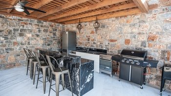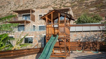 Das Highlight der Villa ist der weitläufige Poolbereich mit einem atemberaubenden Infinity-Pool, der nahtlos in das Meer dahinter zu verschwimmen scheint. Es gibt auch eine Außenküche und einen Essbereich im Freien für ein gemütliches Mittagessen unter der kretischen Sonne sowie einen Spielplatz im Freien, der gerade für die Kleinen perfekt ist. Dieser ideal gelegene Villa ist nur wenige Gehminuten von einer Vielzahl von köstlichen Restaurants in Plaka entfernt.
