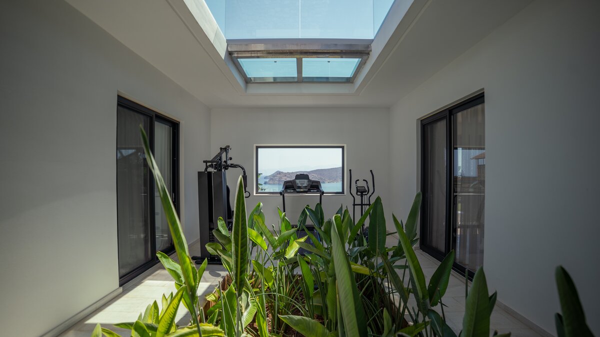 Die geräumige und moderne Villa Gaea ist eine schöne Familienvilla auf Kreta, die perfekt für einen atemberaubenden Blick auf das Meer und die Insel Spinalonga geeignet ist. Im Inneren befindet sich ein großer Wohn-, Ess- und Küchenbereich, der wunderschön in blauen Farbtönen gestaltet ist und auf den Ozean blickt. Im Obergeschoss befinden sich zwei Doppelschlafzimmer mit Bad en suite, die sich auf einen Balkon mit einer unglaublichen Aussicht öffnen. Im unteren Erdgeschoss befinden sich vier weitere schöne Schlafzimmer, von denen zwei mit eigenem Bad, einer Sitzecke und einer großen Auswahl an Fitnessgeräten ausgestattet sind.