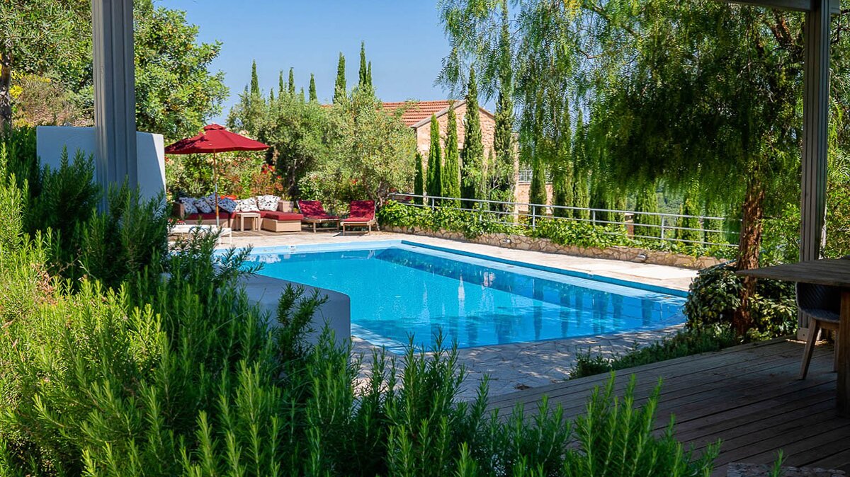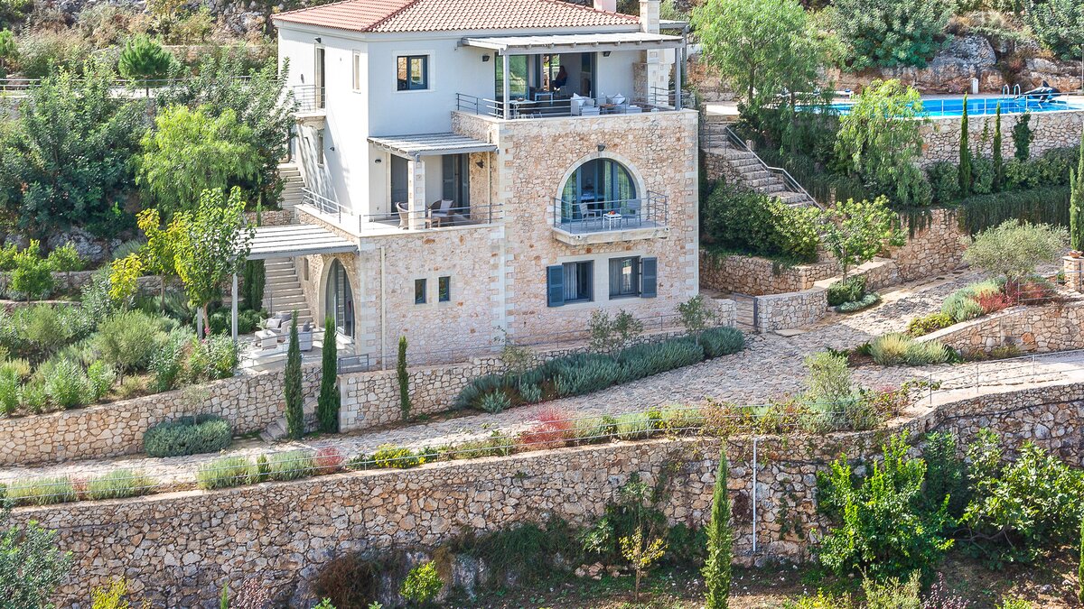 Dieses dreistöckige Haus ist eine moderne Version der klassischen griechischen Villa und liegt auf einem Hügel mit Blick auf das Dorf Gavalochori, das 10 Minuten zu Fuß entfernt ist. Mit Terrassen auf jeder Ebene mit friedlichen Panoramen, über zeitlose Olivenhaine bis hin zum Blau der dahinter liegenden Bucht, nutzt die Villa Levanda die traditionelle Inselarchitektur und passt sie dann an das Leben des 21. Jahrhunderts an. So gibt es Wände aus Sichtstein und riesige Bogenfenster, die eine fantastische Aussicht einrahmen, aber jetzt fügen sie sich wunderbar mit einem sehr schicken Dekor in frischem Weiß, sanfter Taupe und silbrigen Grautönen ein.