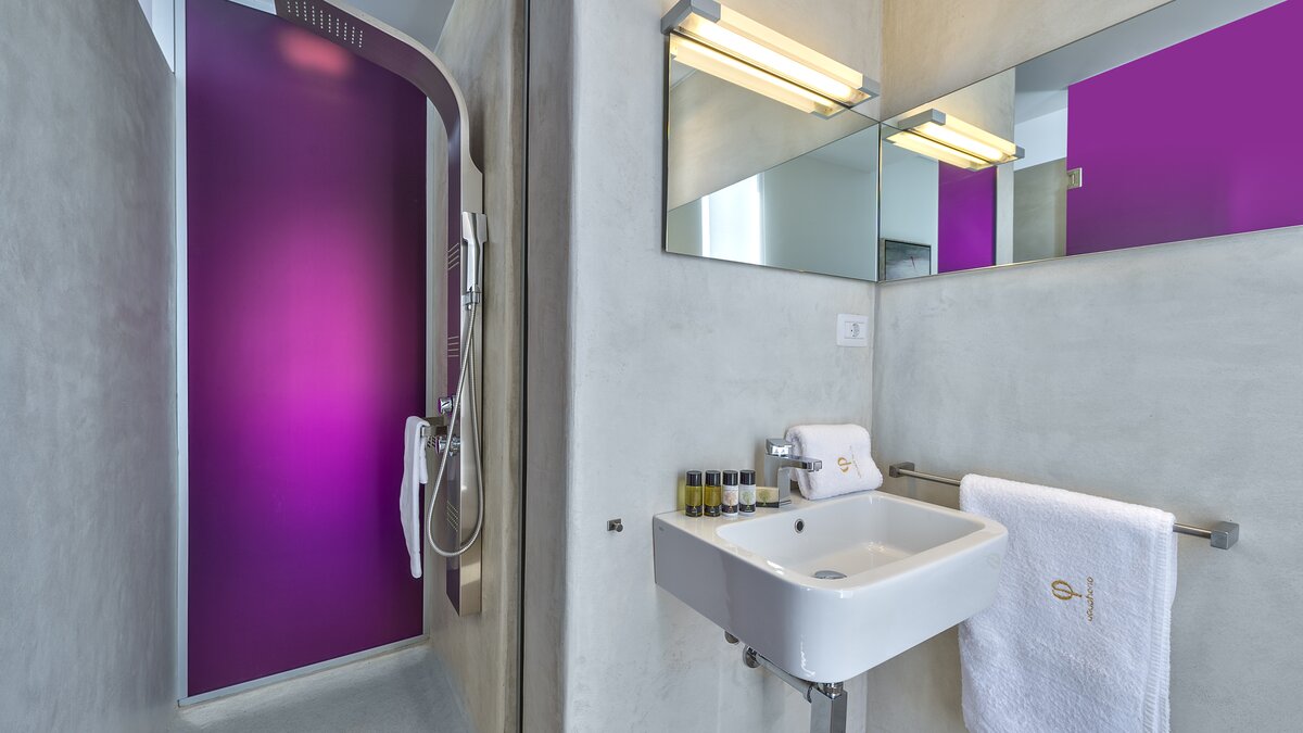 Herzstück der Villa ist ein geräumiger, lichtdurchfluteter Wohnbereich mit einer voll ausgestatteten Küche, einem Essplatz und einem luftigen Wohnzimmer mit Zugang zu einer großen Terrasse. Ein solarbeheizter Infinity-Pool mit römischer Treppe lädt hier zu langen, entspannten Tagen ein, umgeben von duftenden Gärten mit Rosmarin, Thymian und Oleander.