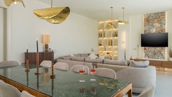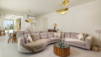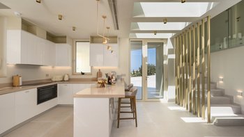 Bei der Ankunft in der Villa Rhea werden die Gäste von dem atemberaubenden architektonischen Design und dem weitläufigen Grundstück des Anwesens begeistert sein. Das Innere der Villa ist modern, minimalistisch und sorgfältig eingerichtet, mit Onyx, luxuriösen Gold-Details, Naturstein, Iroko-Dielen und maßgeschneiderten Möbeln. Es gibt einen schönen großen Wohnbereich, einen Essbereich und eine Küche sowie fünf schöne Schlafzimmer, jedes mit seinem eigenen eleganten Bad. Es gibt auch einen Kinoraum mit einem Smart-TV und einer Playstation 5.