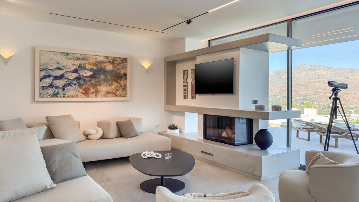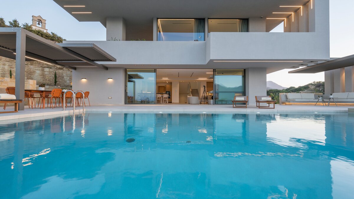 Im Innenbereich sind die offenen Wohnbereiche sonnenlichtdurchflutet, mit einer voll ausgestatteten Küche, einem entspannten Essbereich und einer eleganten Lounge, die mühelos auf eine schattige Terrasse übergeht. Denen Mahlzeiten im Freien werden von einem endlosen Meerblick begleitet, und der Infinity-Pool scheint direkt in die Ägäis zu übergehen und lädt Sie ein, unter der Sonne Kretas zu entspannen.