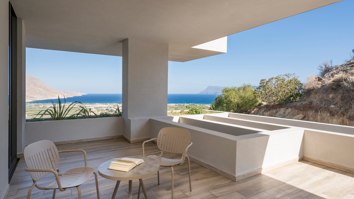 Die Villa Victoria ist eine moderne Oase hoch über der Bucht von Kissamos, wo weitreichende Ausblicke auf das Meer auf die ruhige Schönheit der unberührten Westküste Kretas treffen. Deren elegante Architektur der Villa, die hellen Steinmauern und die raumhohen Fenster schaffen eine nahtlose Verbindung zwischen dem ruhigen Interieur und der umliegenden Natur.