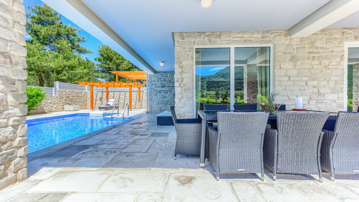 Villa Rock ist eine wunderschöne Villa in Hvar, komplett ausgestattet für einen unbeschwerten Urlaub mit Familie oder Freunden. Der OFFENER GRUNDRISS Erdgeschoss verfügt über einen stilvollen Wohnbereich mit Ecksofa und Kamin, eine voll ausgestattete Küche und einen Essbereich für zehn Personen. Mit raumhohen Fenstern können Sie eine herrliche Aussicht auf die Umgebung in vollen Zügen genießen. Im Obergeschoss befinden sich vier schöne Schlafzimmer mit Bad, während das untere Erdgeschoss einen wunderbaren Unterhaltungs- und Wellnessbereich mit Sauna, Jacuzzi, Tischfußball und Trainingsgeräten bietet. Draußen gibt es einen eingebauten Grill, einen geräumigen Essbereich im Freien, einen Pool und eine überdachte Sitzgruppe, in der Sie lange Sommerabende verbringen können.