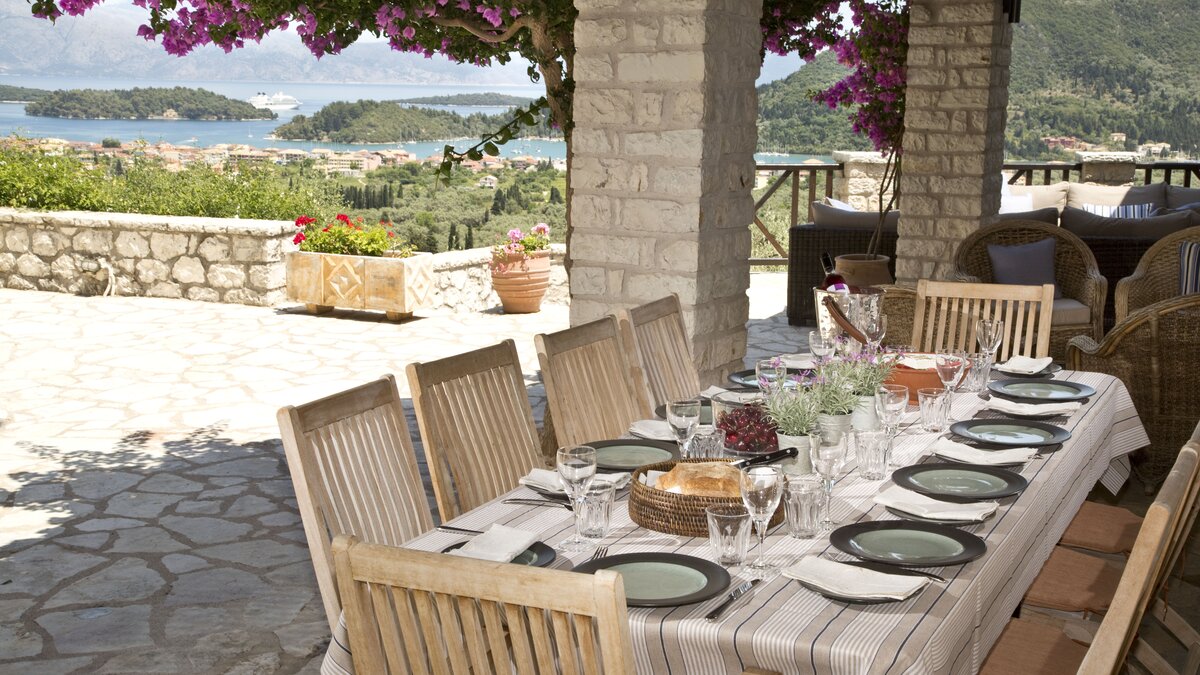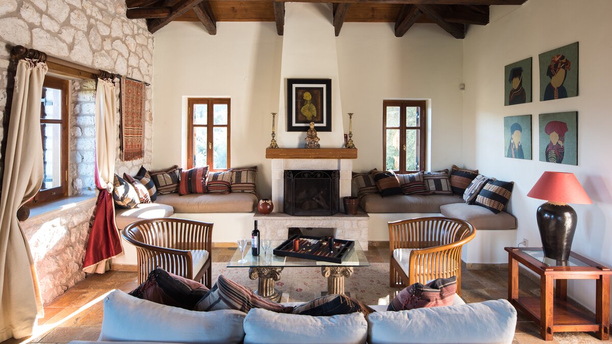 Ideal für zwei Familien oder eine Gruppe von Freunden, ist die Unterkunft in zwei separate Steinvillen aufgeteilt. Im Haupthaus befindet sich im unteren Erdgeschoss ein großes, ungezwungenes Zimmer mit Fernseher und zwei großen Betten, was es zu einem guten Familien- oder Teenagerzimmer macht. Drei der vier Schlafzimmer des To Petrino mit eigenem Bad können zu zwei Einzelbetten umgewandelt werden. Deren vierte, im Gästehaus, verfügt über ein romantisch drapiertes Himmelbett. Deren Villa ist 1,5 km vom geschäftigen kleinen Nidri und fünf Minuten zu Fuß von einer lokalen Taverne entfernt, mit einer Auswahl an Stränden im Umkreis von 5 km.