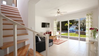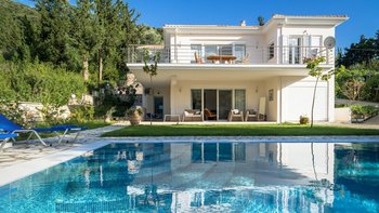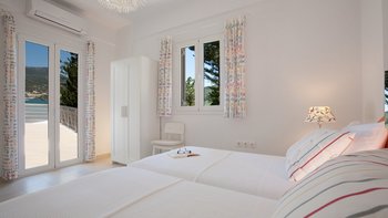 Diese Villa befindet sich in einem Garten mit Rasen und eigenem Liegeplatz und einem Kieselstrand. Dessen obere Terrasse mit Esstisch bietet einen eigenen Blick auf die Bucht darunter, ein weiterer gepflasterter Bereich an der Seite und an der Rückseite ist ideal für einen schattigen Esstisch, ein weiterer ideal für einen Drink bei Sonnenuntergang und die Poolterrasse ist voll mit Liegestühlen. In der einladenden Villa sind attraktiv eingerichtete Zimmer mit einer persönlichen Note ausgestattet und verfügen über drei Schlafzimmer, jedes mit Klimaanlage, 3 Duschbädern und Türen zur Terrasse.
