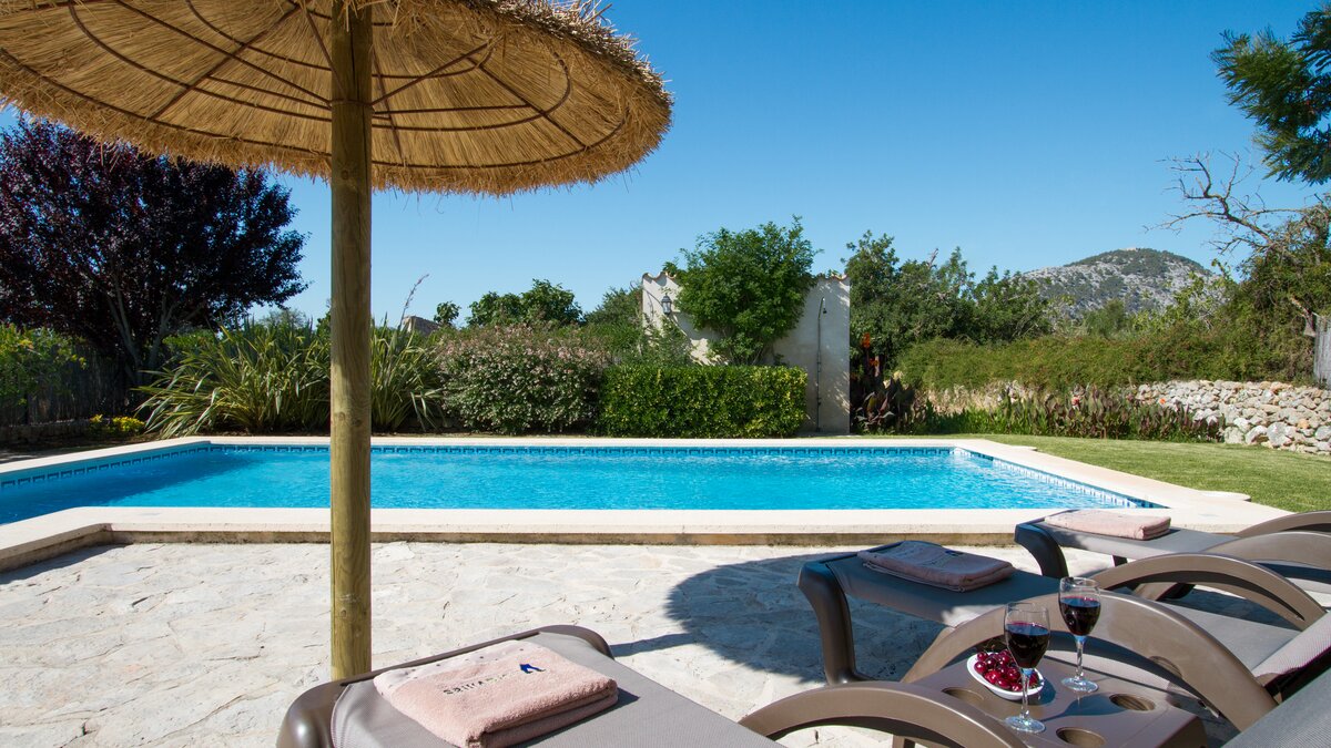 In abgeschiedener, ländlicher Lage und dennoch nur 3 km von Pollensa und 6 km von Puerto Pollensa entfernt, ist diese sehr beliebte Villa eine gute Wahl für einen Familienurlaub. In einem 6000 m² großen Garten gelegen, ist die Villa großzügig geschnitten und durchdacht ausgestattet, drinnen und draußen, und fördert das Leben im Freien mit einem eingebauten Grillplatz und großen schattigen, mit Weinreben bedeckten Terrassen, die zum Essen und Entspannen eingerichtet sind. Im Inneren gibt es ein luftiges Wohnzimmer mit hoher Decke mit Essbereich und Zugang zu den Terrassen, eine separate moderne Küche mit Frühstücksbereich und einen Hauswirtschaftsraum. Von einem Ende des Esszimmers gelangt man in das hübsche, geräumige, helle Hauptschlafzimmer mit eigenem Bad. Ein Flur vom Essbereich führt zu zwei weiteren Zweibettzimmern mit aufwendigen Kunstwerken, eines mit eigenem Bad und eines mit angrenzendem Badezimmer. Der Pool liegt zwischen großen Sonnenterrassen und es gibt weitläufige Rasengärten auf der Rückseite des Hauses. Frühzeitige Buchung ist erforderlich.